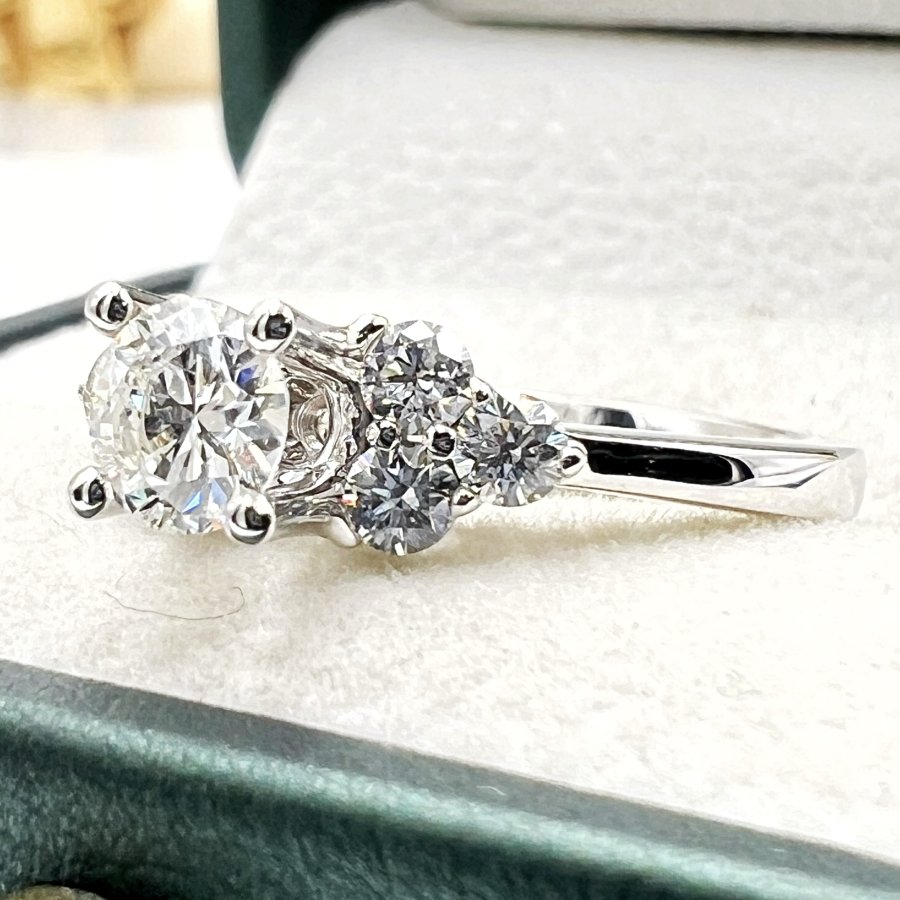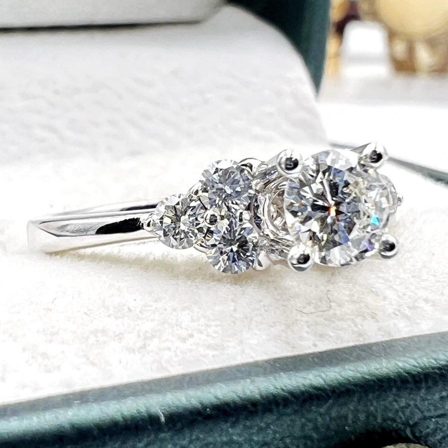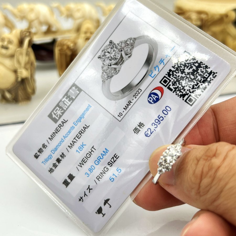Nhẫn vàng trắng 18k Paris Tri-Sides mới tinh đính full soàn thiên nhiên (6v - 2Ly5 viên chủ 4.9li G-VVS1) trắng tinh rực lửa rất đẹp, size 17mm, nặng 3.6gram (0.96 chỉ), còn thẻ khách mua mới 2.395€ ~ 74tr2, em giao thông 34tr❤️ Thiên 0923.12.6789