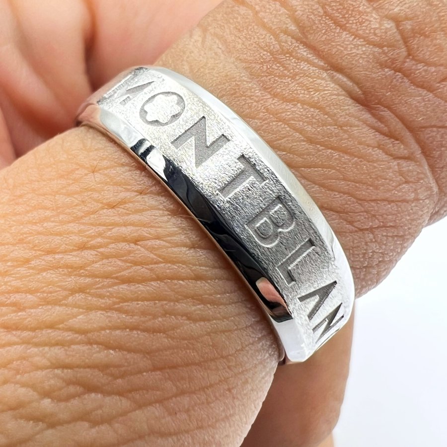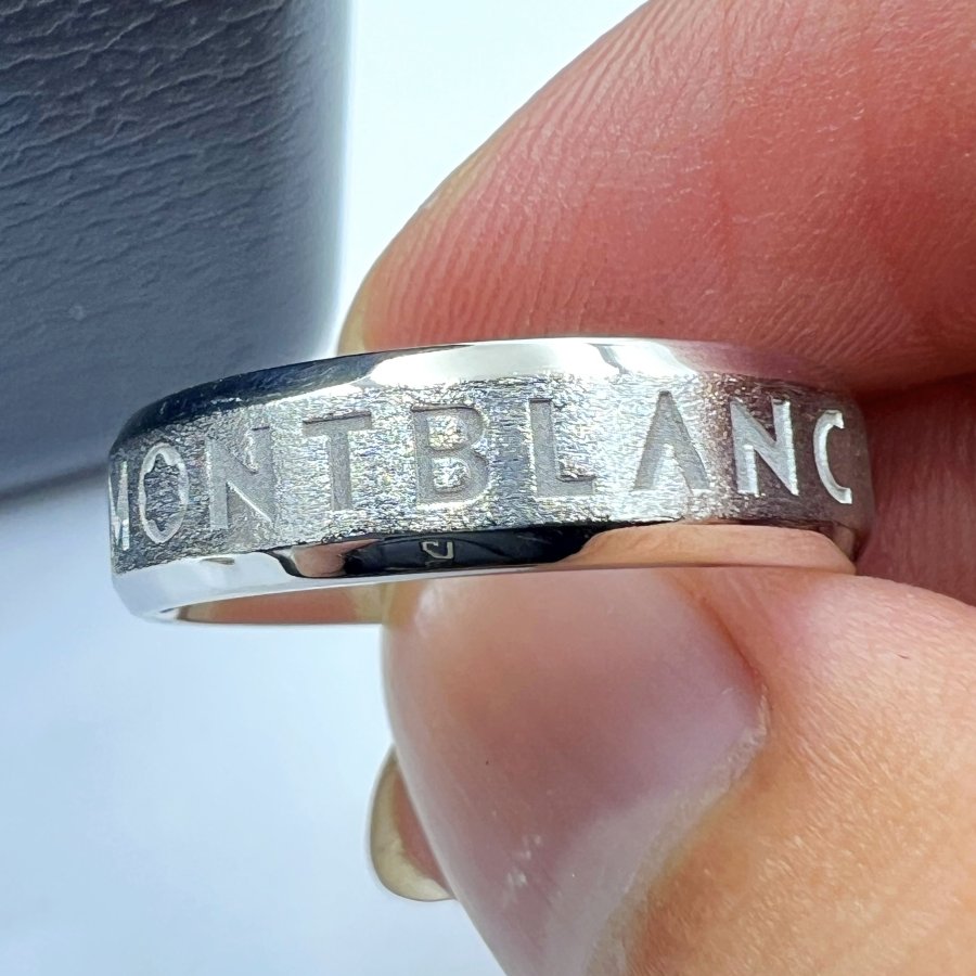 Nhẫn vàng trắng 18k vàng và paladi hiệu Mont.blanc Crownring mới tinh phôm tròn hoa văn sắc nét rất đẹp, size 20mm - bản ngang 6mm, nặng 7.75gram (2.07 chỉ), giao thông 26tr8❤️ Thiên 0923.12.6789