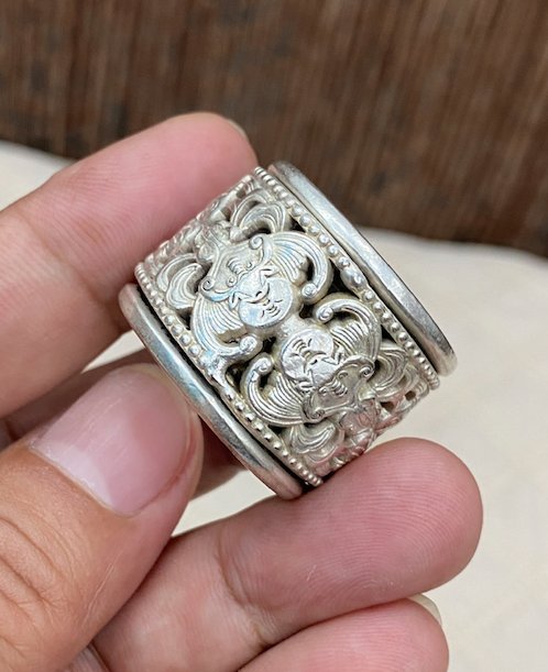 Nhẫn xoay ngón cái, hợp kim bạc tây tạng, mặt trong khắc chữ, hoa văn tinh tế