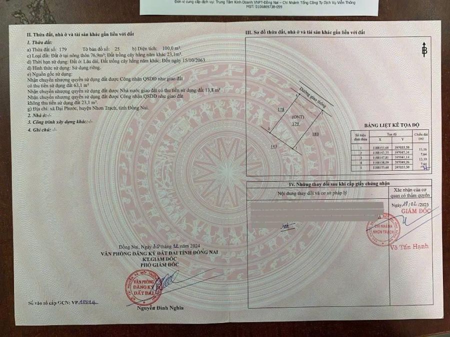 Diện tích 100m² ( 7.6 x 13), vị trí đắc địa, xã Đại Phước.