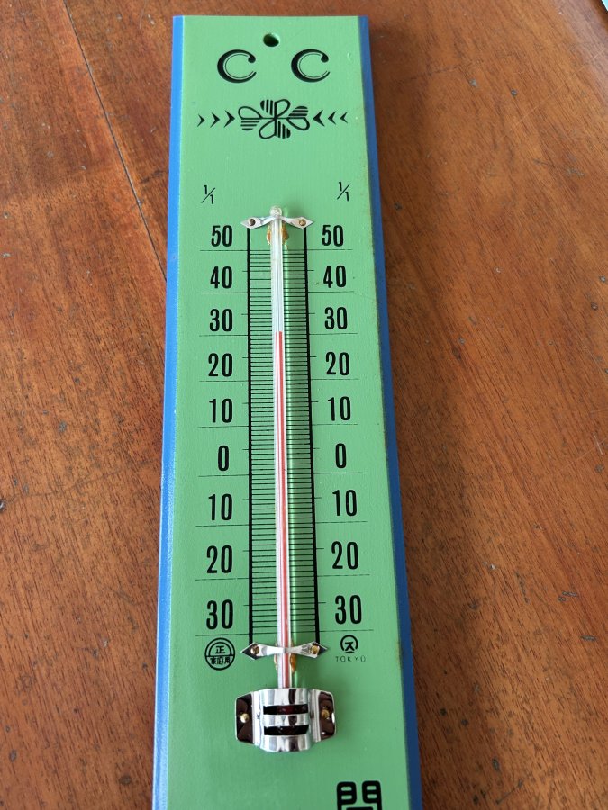Bán 1 nhiệt kế treo tường thủy ngân Japan thân bằng gỗ phong cách cổ điển chưa sử dụng