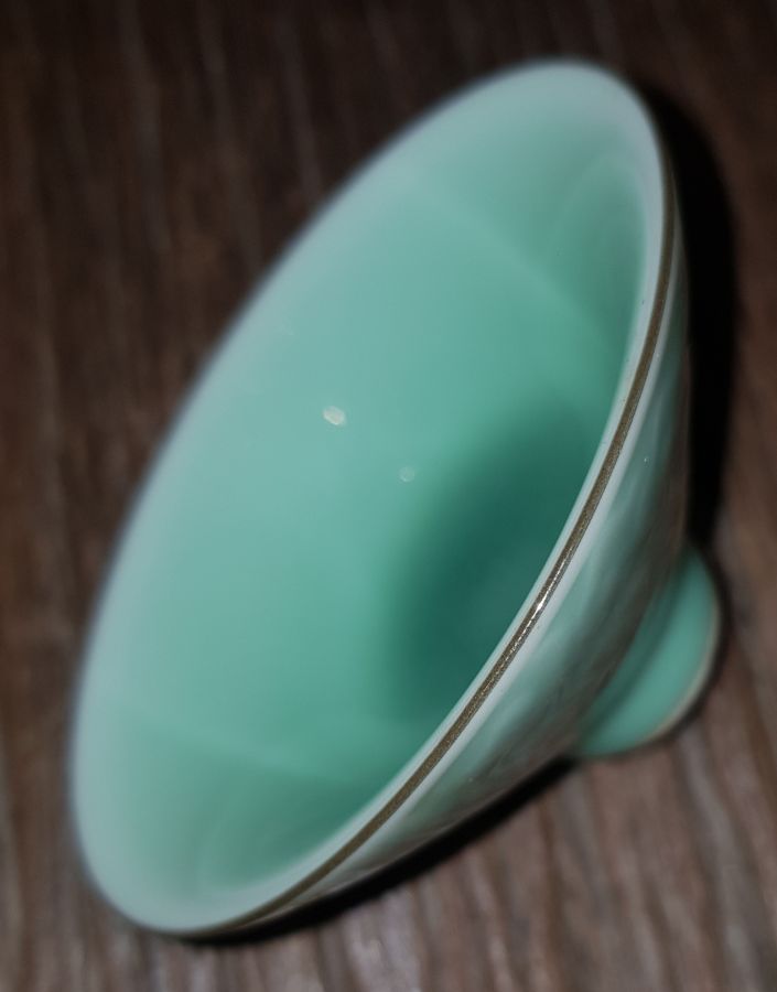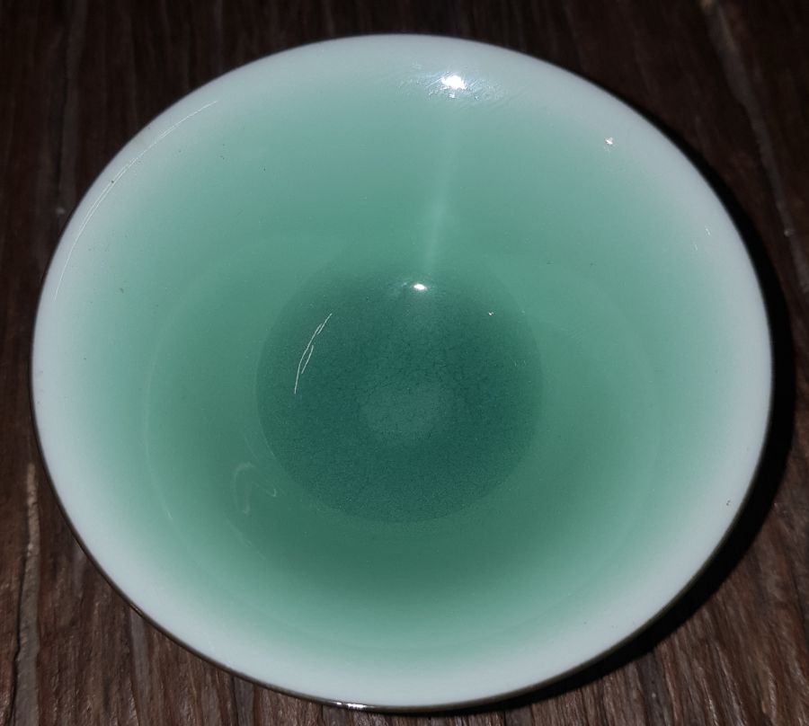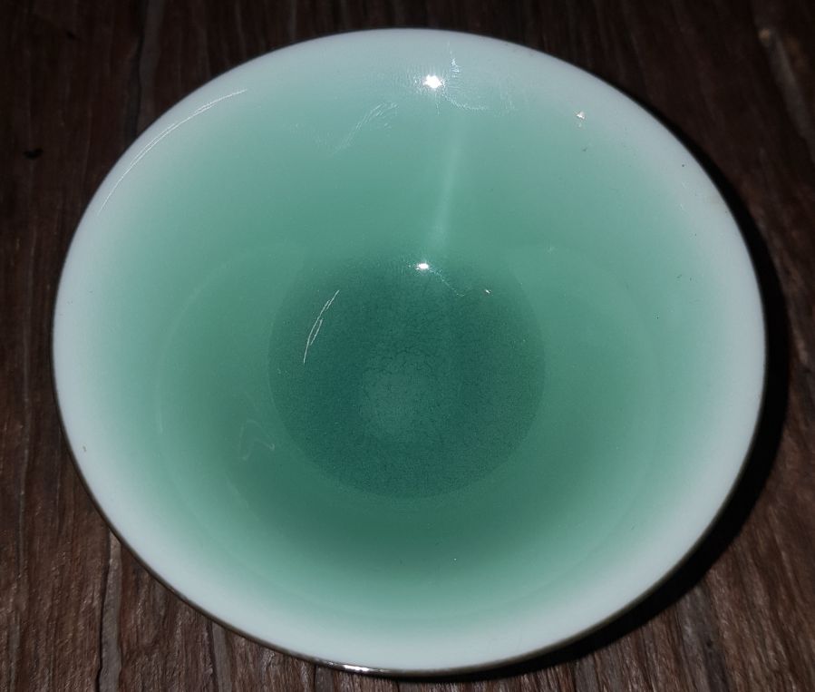 Như viên ngọc bích giữa Thái Hồ vậy. Chén dáng chuông miệng 8.6cm. cao 4.2cm. GL850k