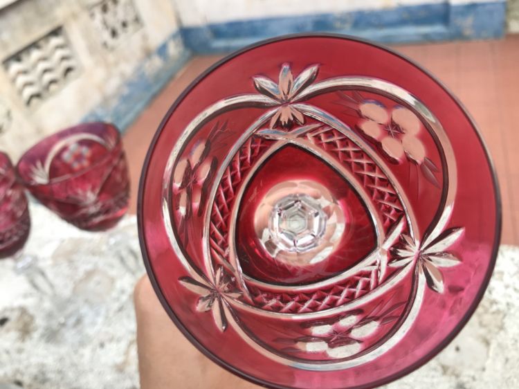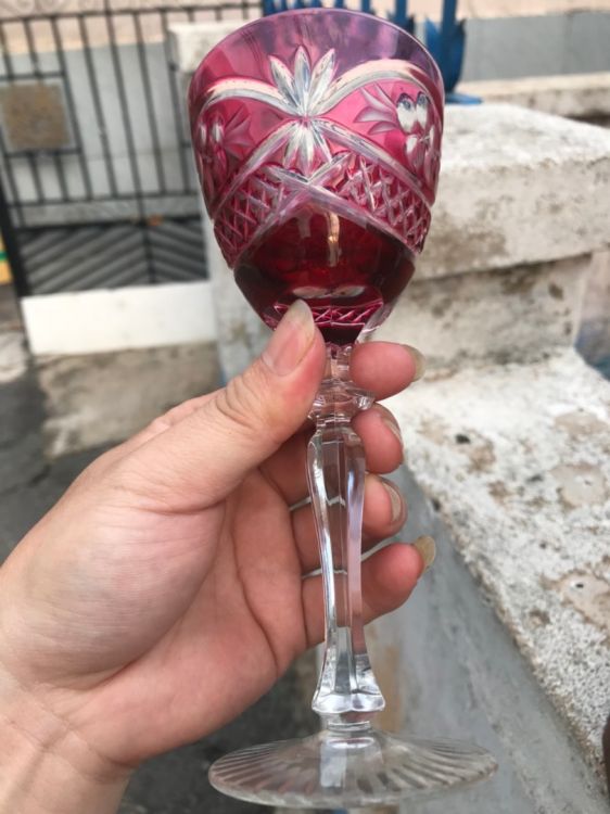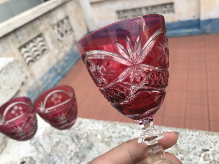 bộ 3 ly pha lê đỏ giá 4tr5 ( 1 cái của nó cũng đã tầm 7-8 tr ạ)
