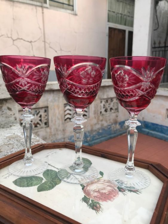 bộ 3 ly pha lê đỏ giá 4tr5 ( 1 cái của nó cũng đã tầm 7-8 tr ạ)