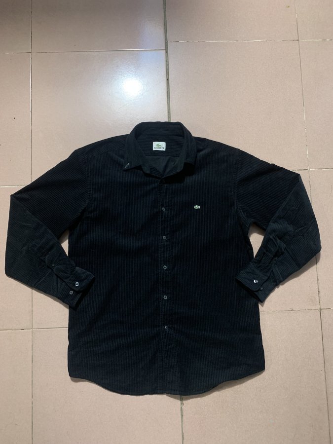 Nhung gân Lacoste chính hãng đen tuyền, form mặc sơ mi hoặc khoác ngoài đều đẹp.