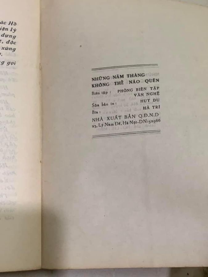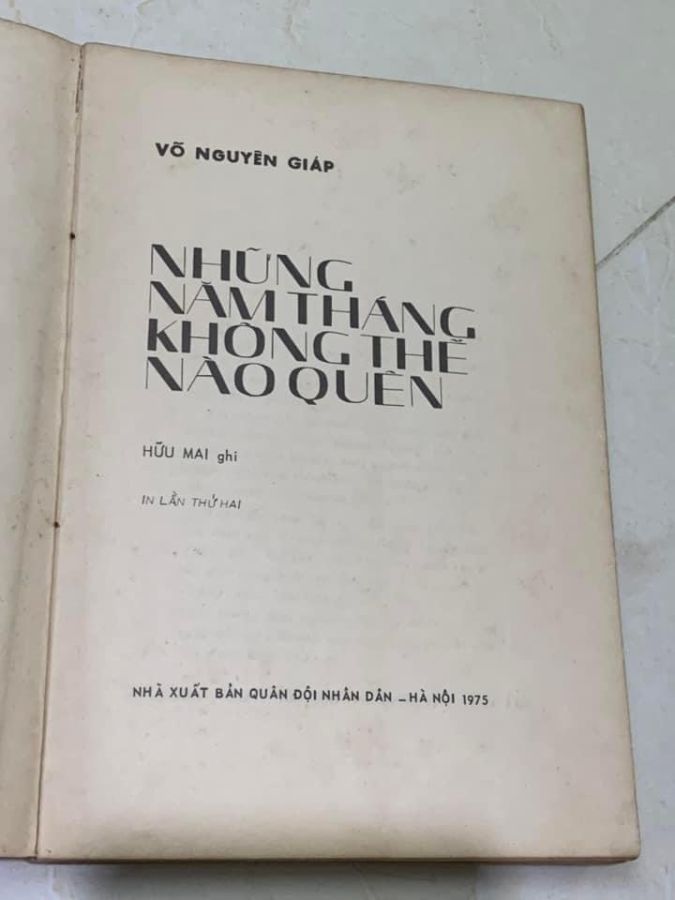Võ Nguyên Giáp Những năm tháng không thể nào quên . Xuất bản tháng 10/1975 ( in lại lần 2 ) Lần 1 năm 1970 ( kỷ niệm 80 năm ngày sinh chủ tịch HCM )Dầy 440 trang .Giá 500k