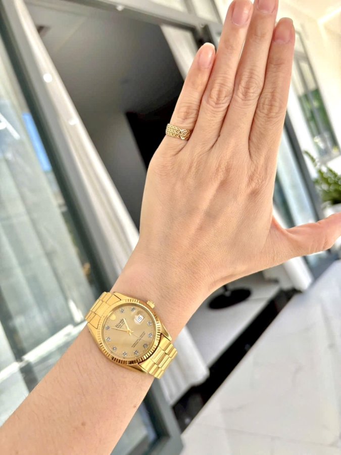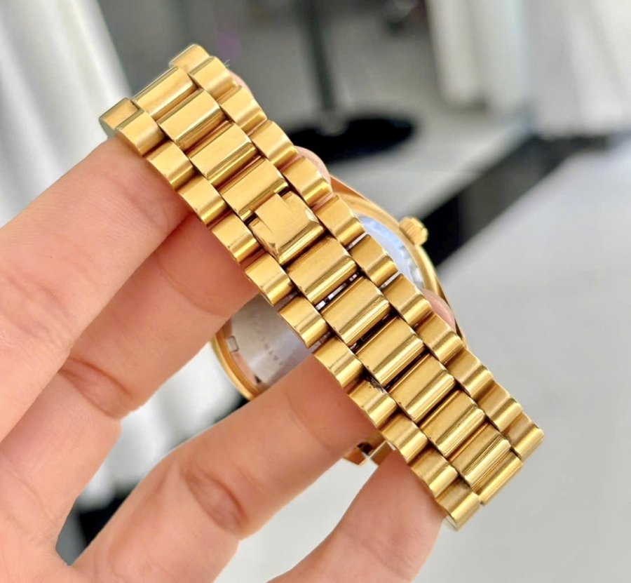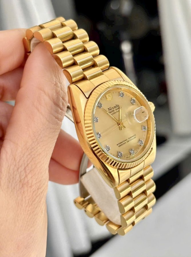 - Đồng hồ chính hãng - Size 35mm. Phù hợp cho cả nam và nữ- Niềng băm thiết kế sang trọng đẳng cấp- Full vàng gold đẹp xuất sắc