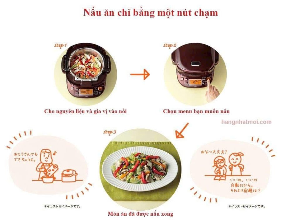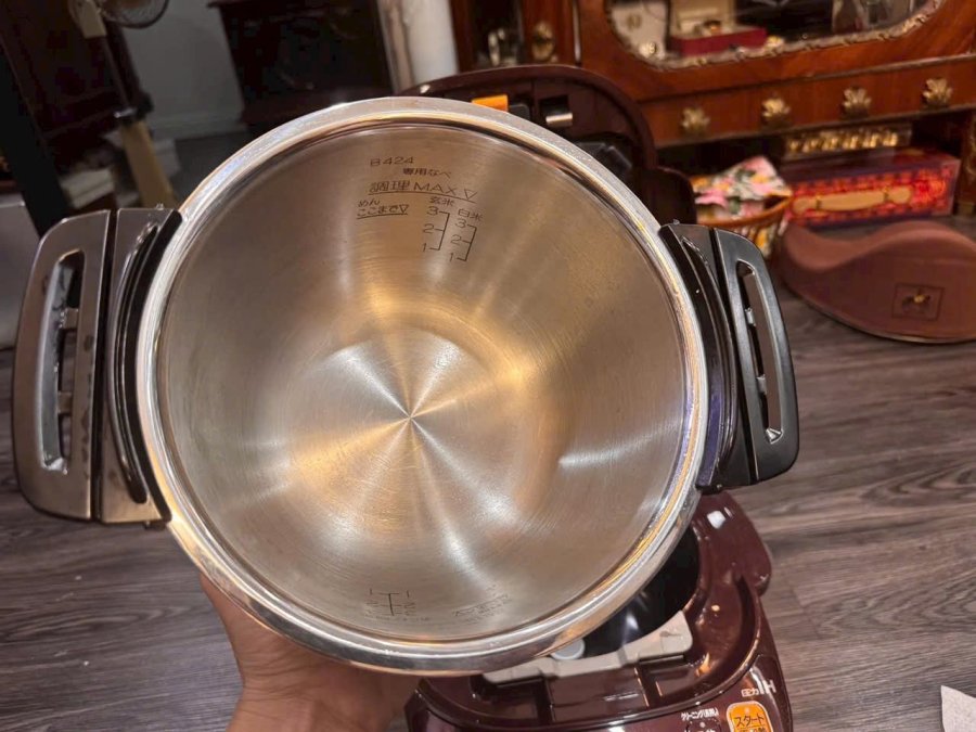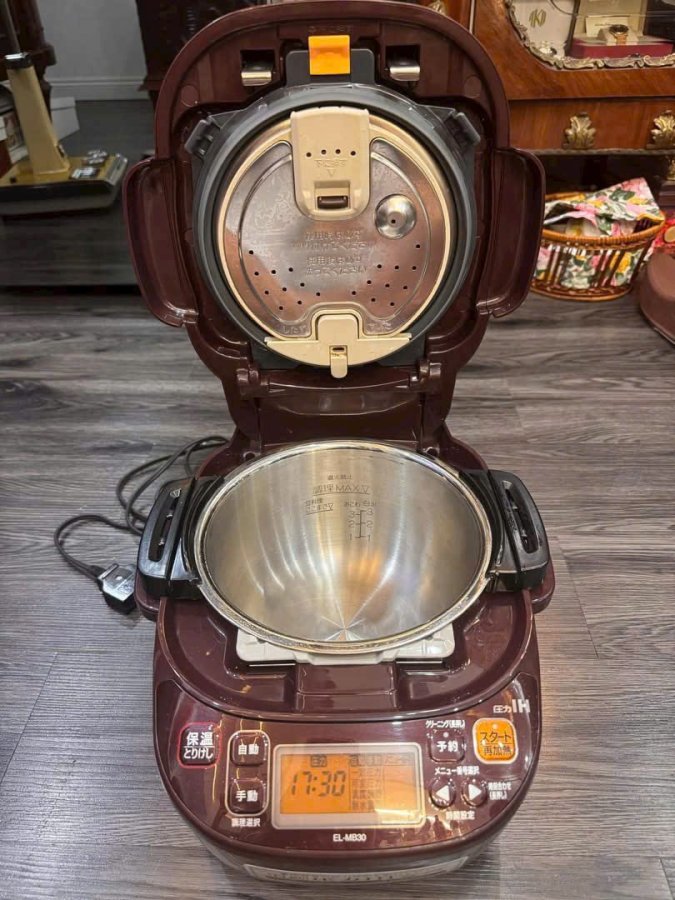 Nồi áp suất điện Zojirushi EL-MB30 date 2017, còn rất mới, với công nghệ Inverter tiết kiệm 50-80% điện. Điện 100V-1200W -Thiết kế dễ tháo rời để lau chùi, vệ sinh -AI nấu tự động điều chỉnh nhiệt độ - Nhiều chế độ nấu, nhiều chức năng ưu việt. —Thiết kế hiện đại đậm chất Nhật Bản Nồi áp suất điện Zojirushi EL-MB30 với thiết kế hiện đại đậm chất Nhật Bản với menu đa dạng, dễ dàng nấu các món ăn khác nhau từ hầm, ninh, kho, nấu cơm,… và nhiều loại món ăn khác. —Nấu ăn đơn giản và an toàn Nồi áp suất điện Zojirushi EL-MB30 được trang bị các cảm biến thông minh có thể tự động điều chỉnh áp suất và nhiệt độ theo chế độ nấu, giúp bạn nấu ăn dễ dàng và an toàn. — Lòng nồi làm từ thép không rỉ Lòng nồi được làm từ vật liệu thép không gỉ an toàn với sức khỏe người sử dụng, lòng nồi dày có khả năng chịu nhiệt độ và áp suất cao, đồng thời giúp dễ dàng vệ sinh — Menu đa dạng và ổn định Với menu nấu đa dạng và ổn định, bạn chỉ cần chuẩn bị nguyên liệu và bấm nút, tất cả quá trình chế biến đều được thực hiện tự động. Sau khi nấu xong, nồi áp suất điện Zojirushi EL-MB30 có chế độ giữ ấm tự động, giúp thực phẩm giữ nguyên hương vị và nhiệt độ trong một thời gian dài. Em gl 2.700k