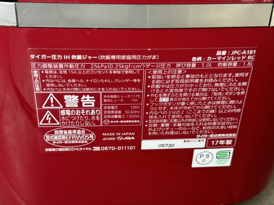 Nồi cơm điện cao tần TIGER JPC-A181 1.8LIT ,ngoại hình còn mới 92%, xoong dày 9 lớp siêu bền nhé mọi người , màu đỏ tươi nổi bật sang trọng