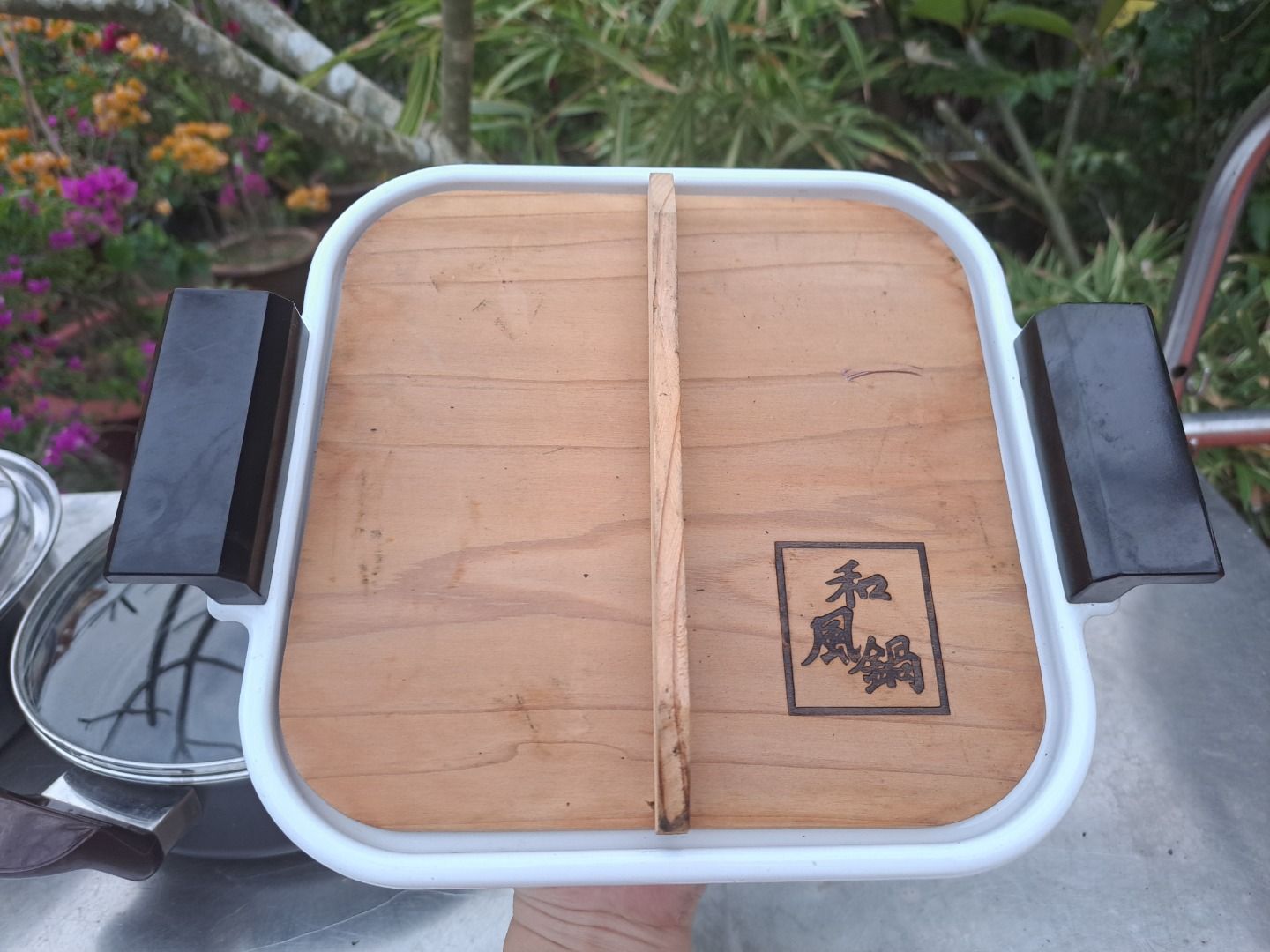 Nồi lẩu men, Nắp gỗ. Xài được bếp từ. Kích thước như hình. Bán 400k