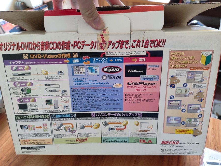 Ổ ghi DVD Buffalo DVM-L88U2, dùng điện 100V, đọc đĩa rất mượt, chức năng ghi ae mua về nghiên cứu dùm. Còn đĩa cài đặt, sách hướng dẫn và dây cáp tín hiệu.