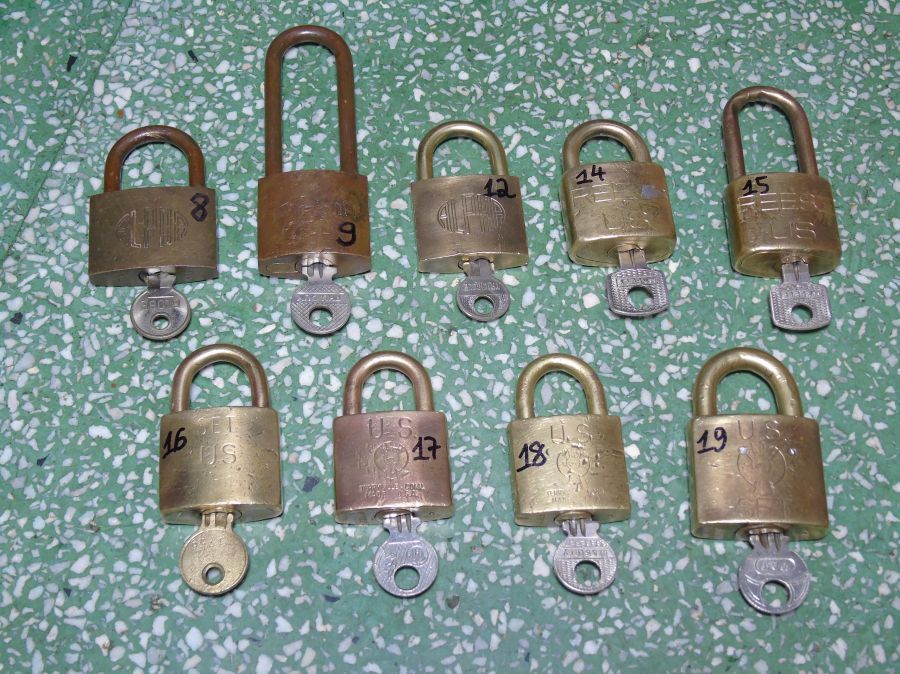 Các ổ khóa cổ xưa toàn đồng - vòng chữ U cũng bằng đồng cổ xưa đi kèm 1 chìa khóa sử dụng của từng ổ- đều sử dụng tốt. Thích hợp sử dụng khóa tủ cửa cổ điển hay sưu tầm trang trí decor...