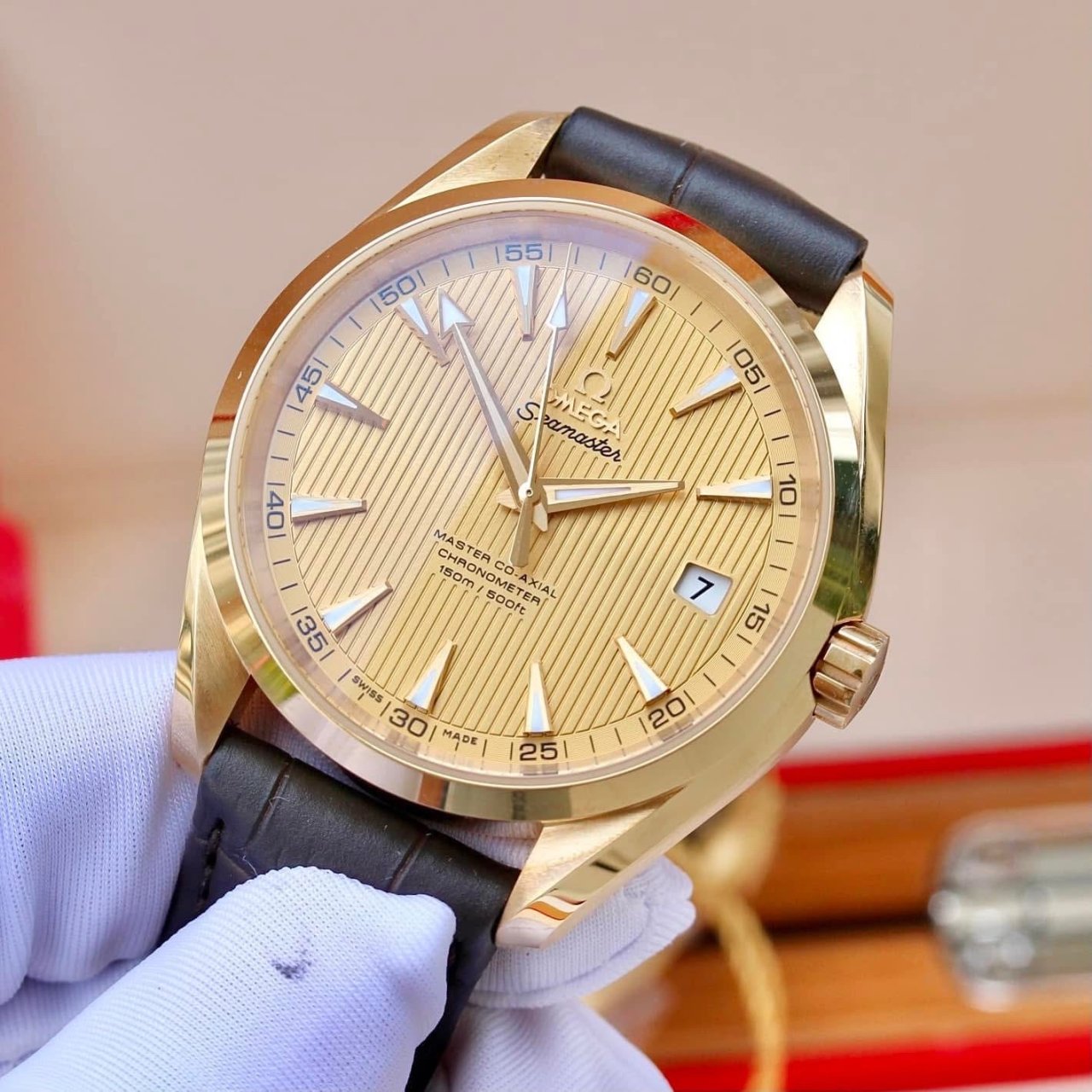 Chiếc Omega vàng khối yellow gold khá hiếm gặp với dial champagnes toát lên vẻ thượng lưu quý phái