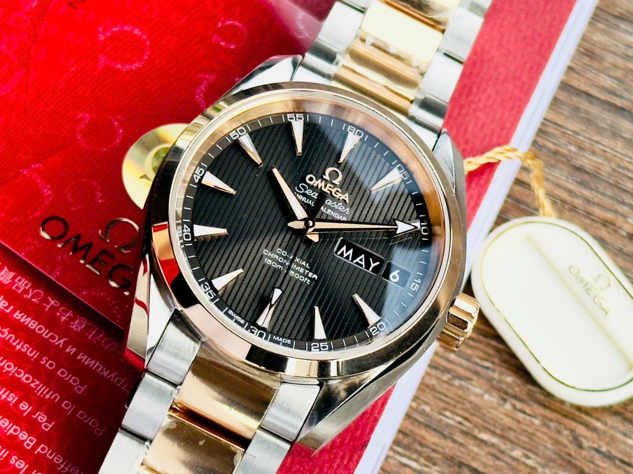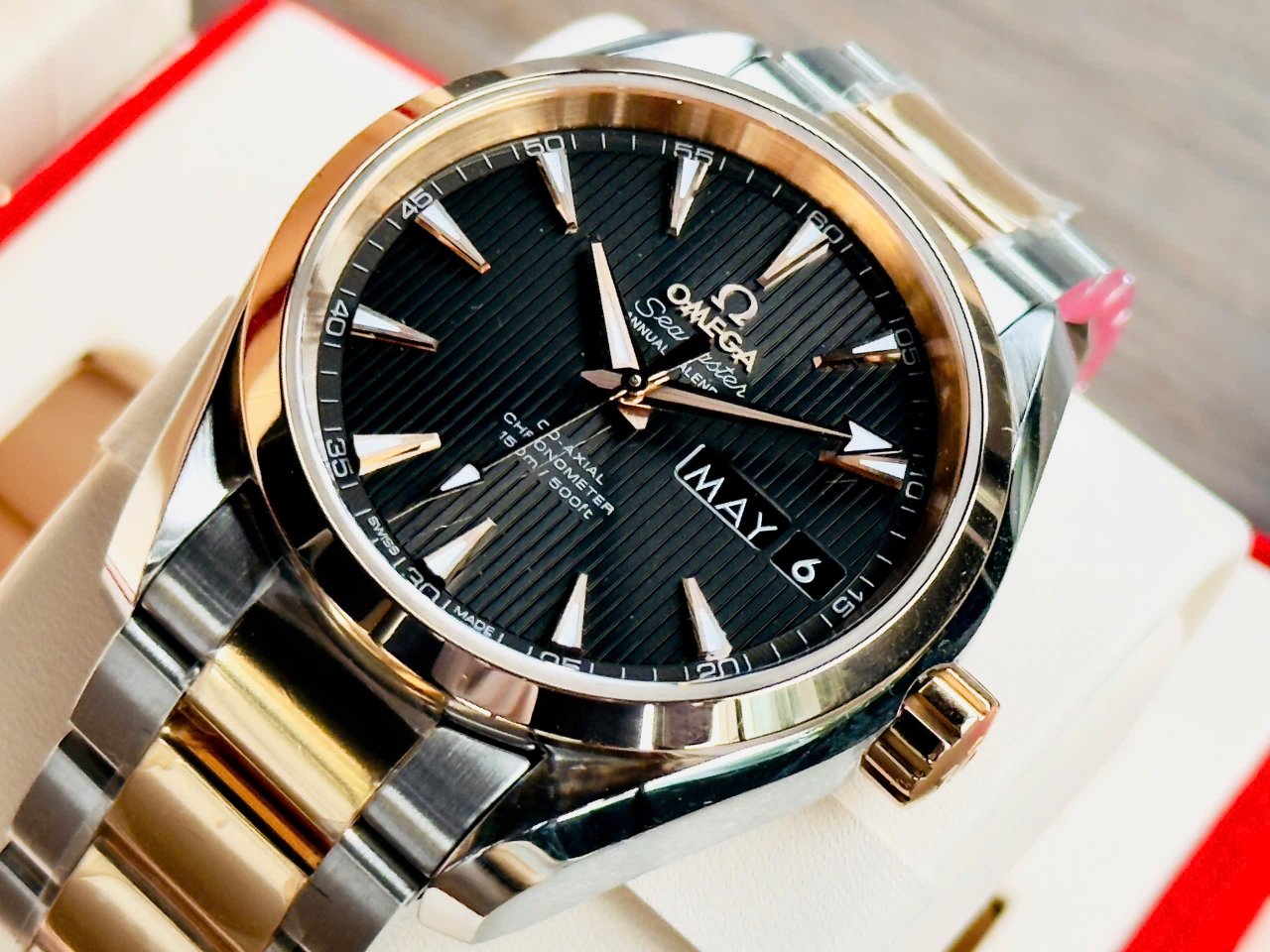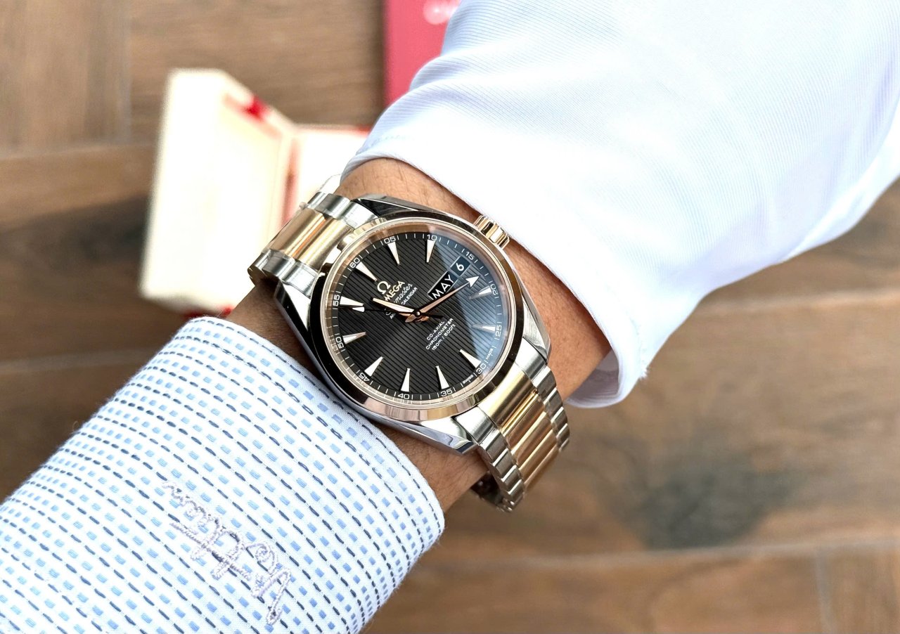 🔥 Mặt dial màu grey độc đáo với họa tiết sọc gỗ teak rất đẹp & đặc trưng của dòng Aqua Terra