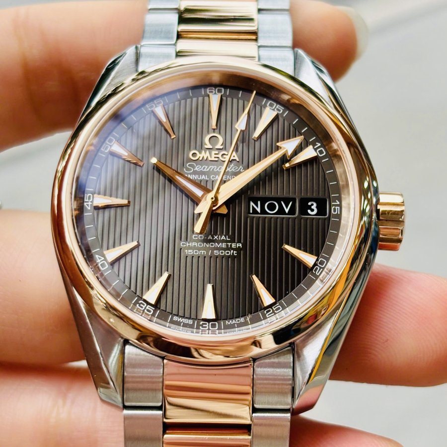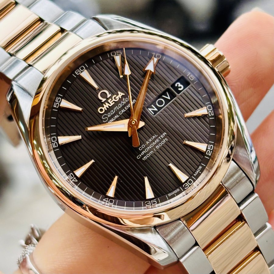 OMEGA Aqua Terra 8601 Chocolate Annual Calendar, Ref: 231.20.39.22.06.001, Demi Vàng hồng đúc 18k, Size 39mm, Like new fullbox, Giao lưu 162 triệu (Retail:~380 triệu) ah
