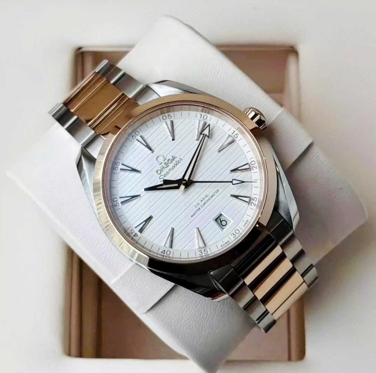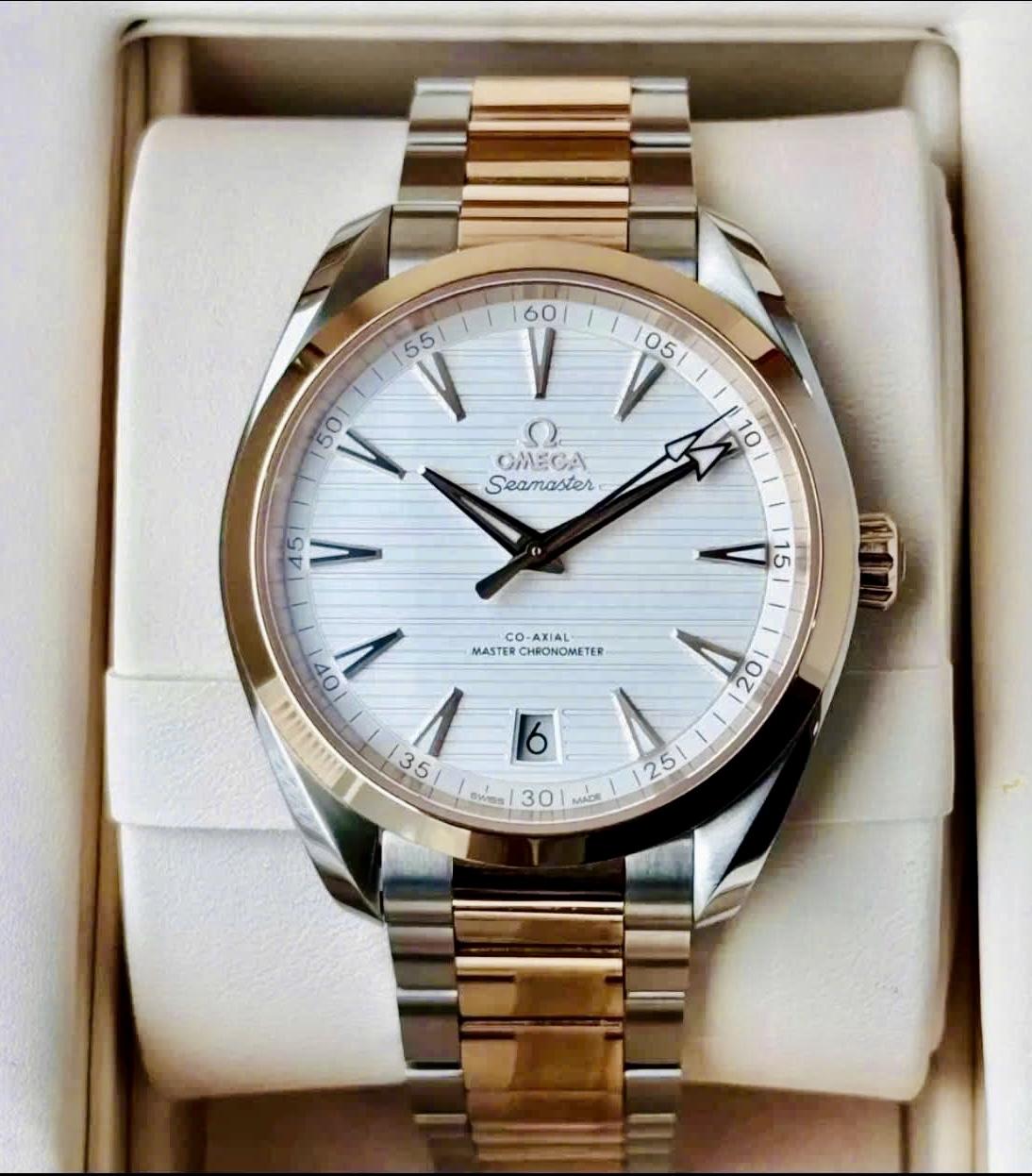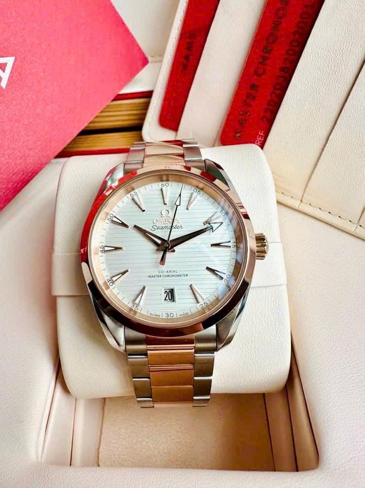 OMEGA Aqua Terra 8800, Demi Vàng hồng đúc 18k, Size 38mm, Like new fullbox (Bảo hành toàn cầu ), Giao lưu 148 triệu (Retail: 286 triệu) ah