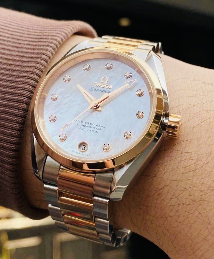 OMEGA Aqua Terra Master 8500 Si14, MOP White Diamonds, Ref: 231.20.39.21.55.003, Demi Vàng hồng đúc 18k nguyên khối, Size 39mm, Like new fullbox, Giao lưu 159 triệu (Retail:~350 triệu) ah