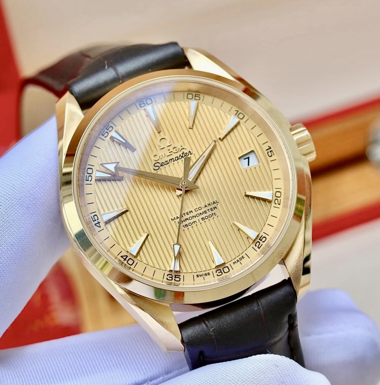 OMEGA Aqua Terra Master 8501 Si14, Index dạ quang, Vàng đúc 18k nguyên khối, Ref: 231.53.42.21.08.001, Size 41.5mm, Like new fullbox date 2023 (Bảo hành chính hãng toàn cầu), Giao lưu 238 triệu (x nhỏ _ Retail: ~ 550 triệu) ah