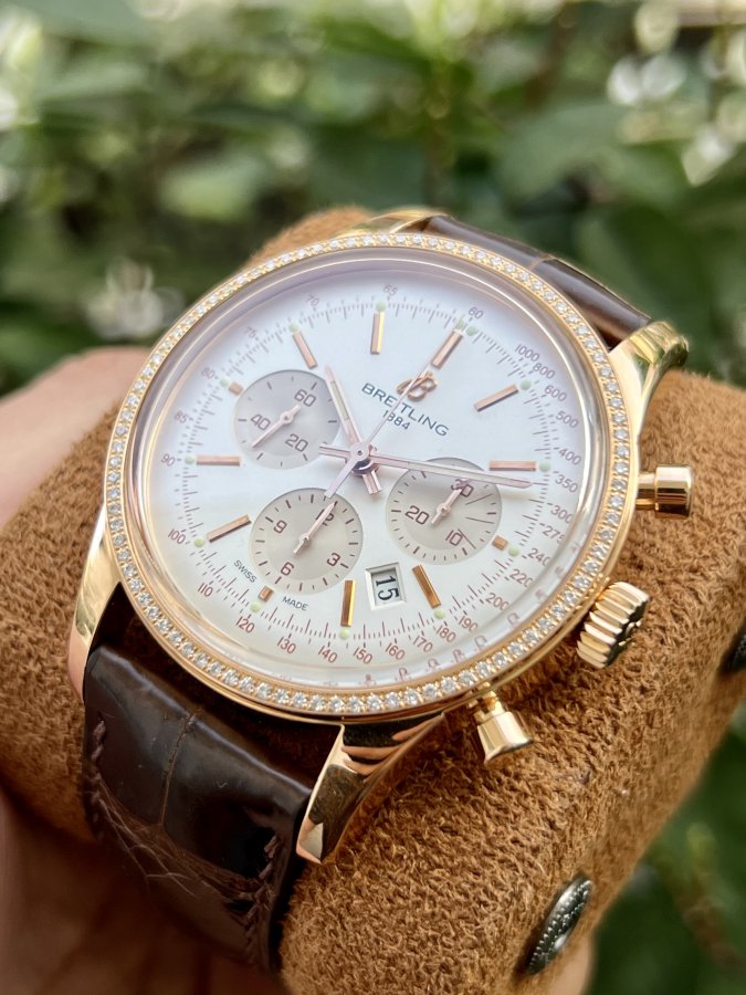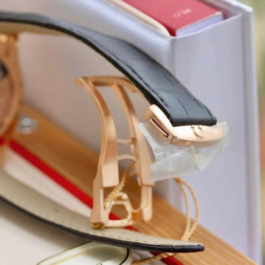 -Sử dụng bộ máy cao cấp Caliber 8612 tích cót 55h cơ chế lịch Ngày-Thứ rất tiện lợi bố cục dial hài hoà đối xứng tổng thể rất hài hoà. ( quả văng và cầu máy được làm từ vàng hồng đặc 18k).