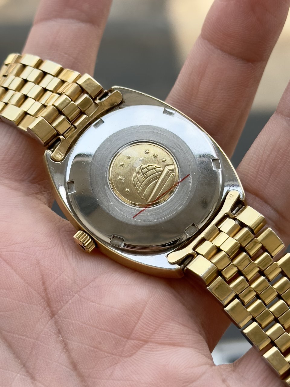 🔸Demi Vàng 14K sắc nét,niềng vàng khối.Mặt số lụa vàng hiếm gặp,cọc cài đá đen bắt sáng rất tốt,đáy vàng đúc thiên văn chòm sao.