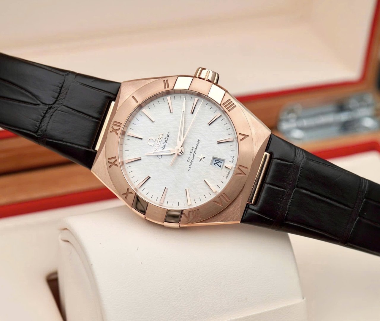 OMEGA Constellation Master 8801 index, Vàng hồng đúc 18k nguyên khối + khoá đôi vàng hồng đúc 18k (2.8 cây vàng 18k ~ 300 triệu), Size 39mm, Siêu lướt 99.9% date 9/2025, Giao lưu 368 triệu (Retail:~ 650 triệu) ah