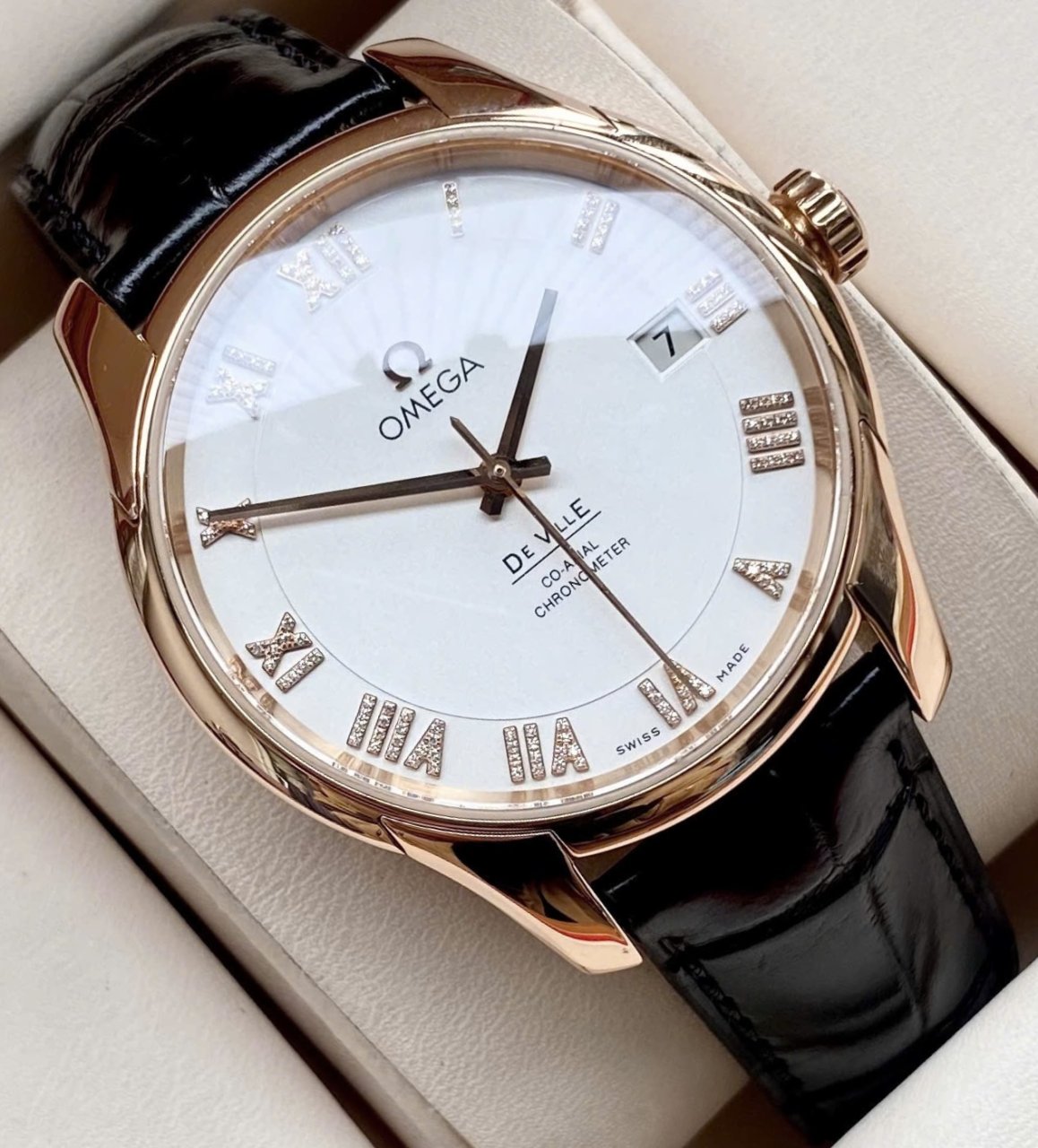 OMEGA De Ville Hour Vision 8501 Diamonds Index, Ref: 431.53.41.21.52.001, Vàng hồng đúc 18k nguyên khối, Size 41mm, Like new fullbox date cao (Bảo hành CHTC), Giao lưu 286 triệu (Retail: ~ 600 triệu) ah