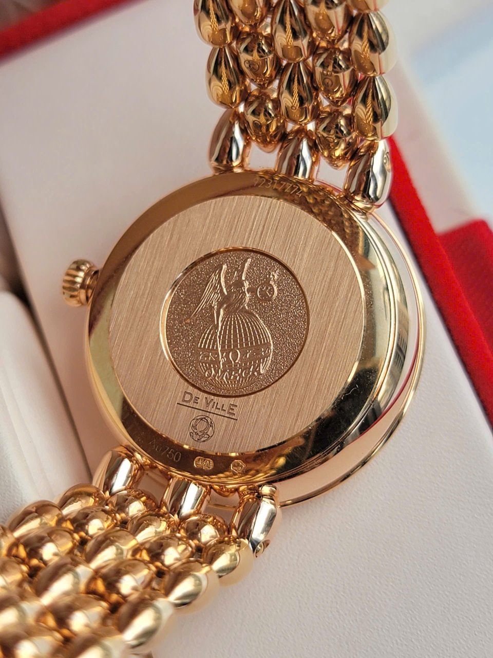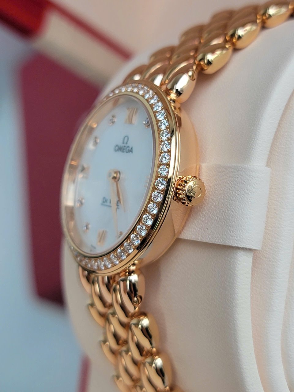 Cập bến mẫu Omega vàng khối: thân và dây đều đúc bằng vàng đúc 18k màu red gold ( nặng ~ 3 cây vàng )