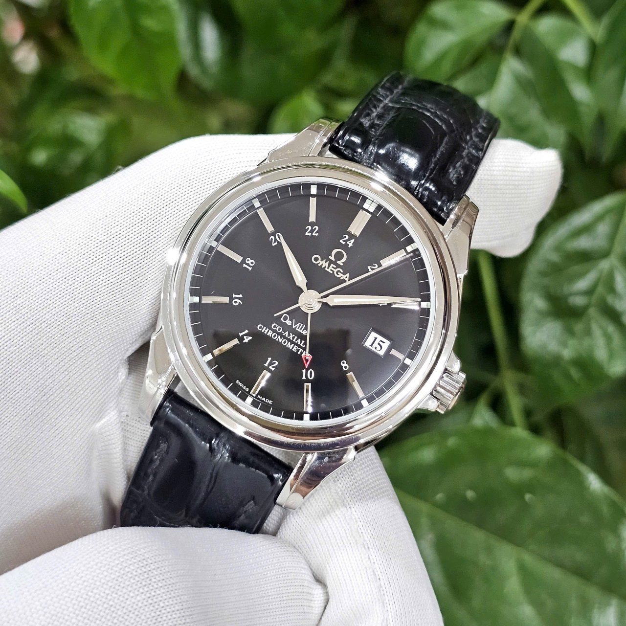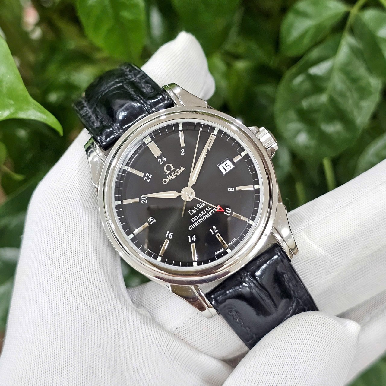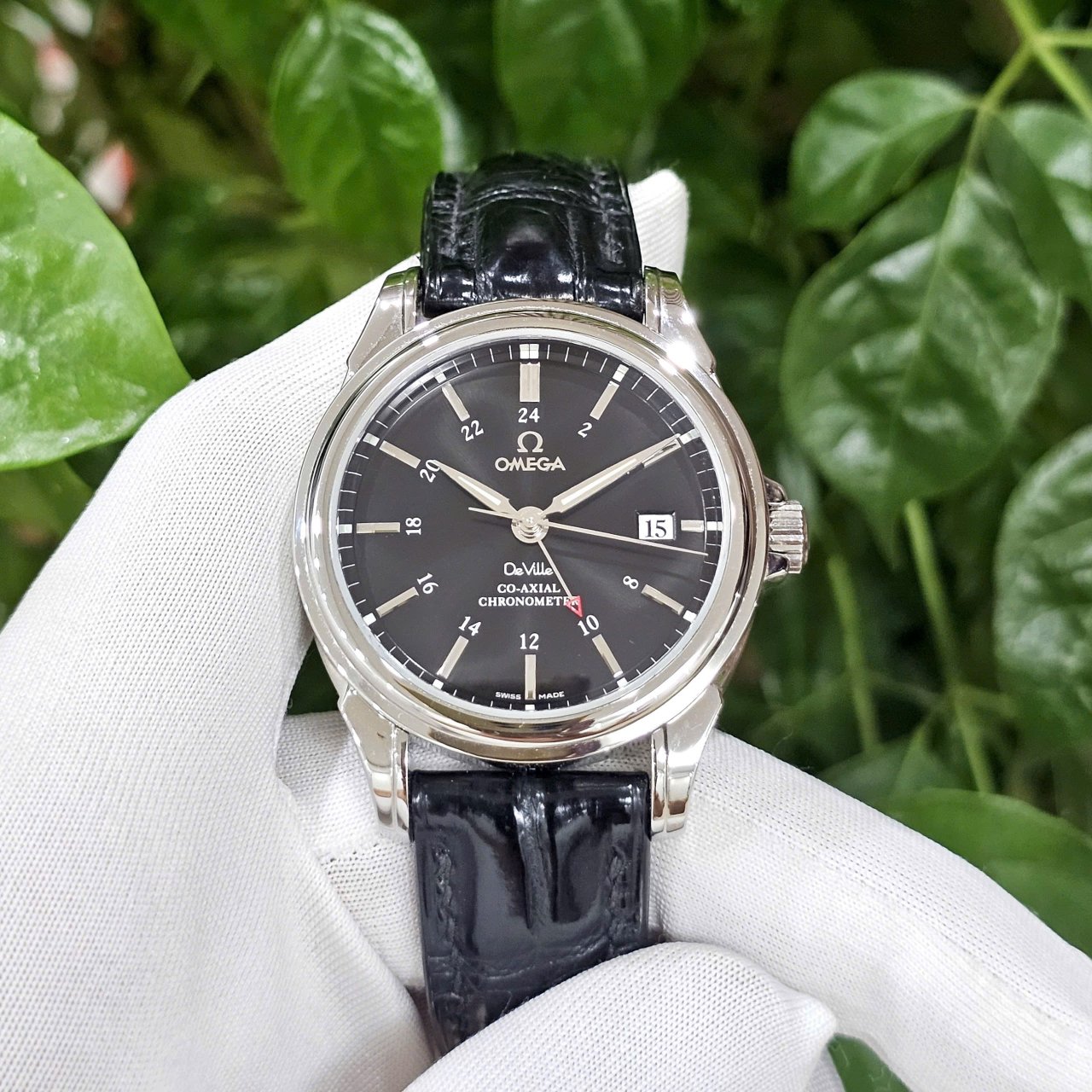 Omega DeVille GMT đen huyền bí. Dresswatch cực sang trọng.