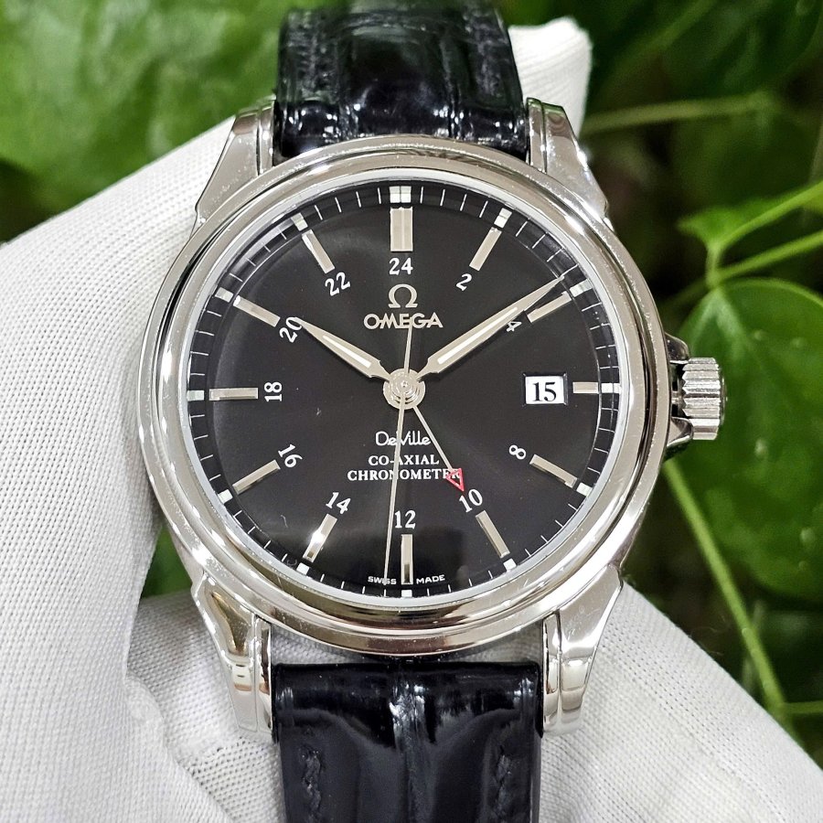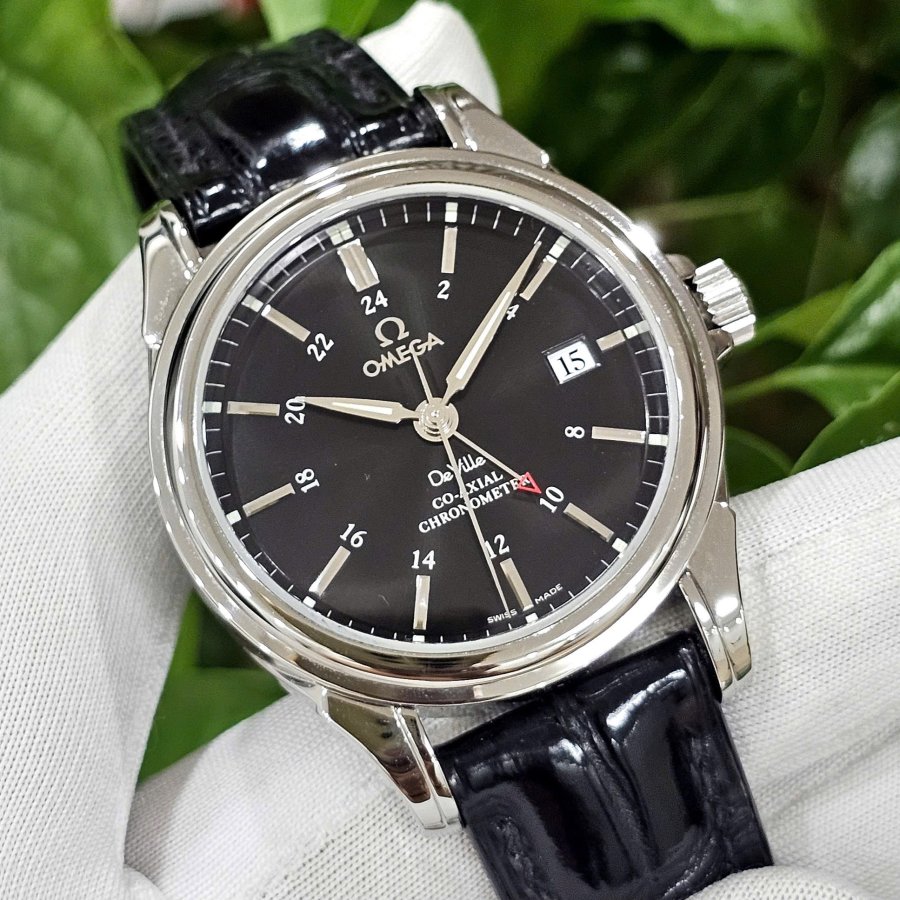 Omega DeVille GMT đen huyền bí. Dresswatch cực sang trọng.