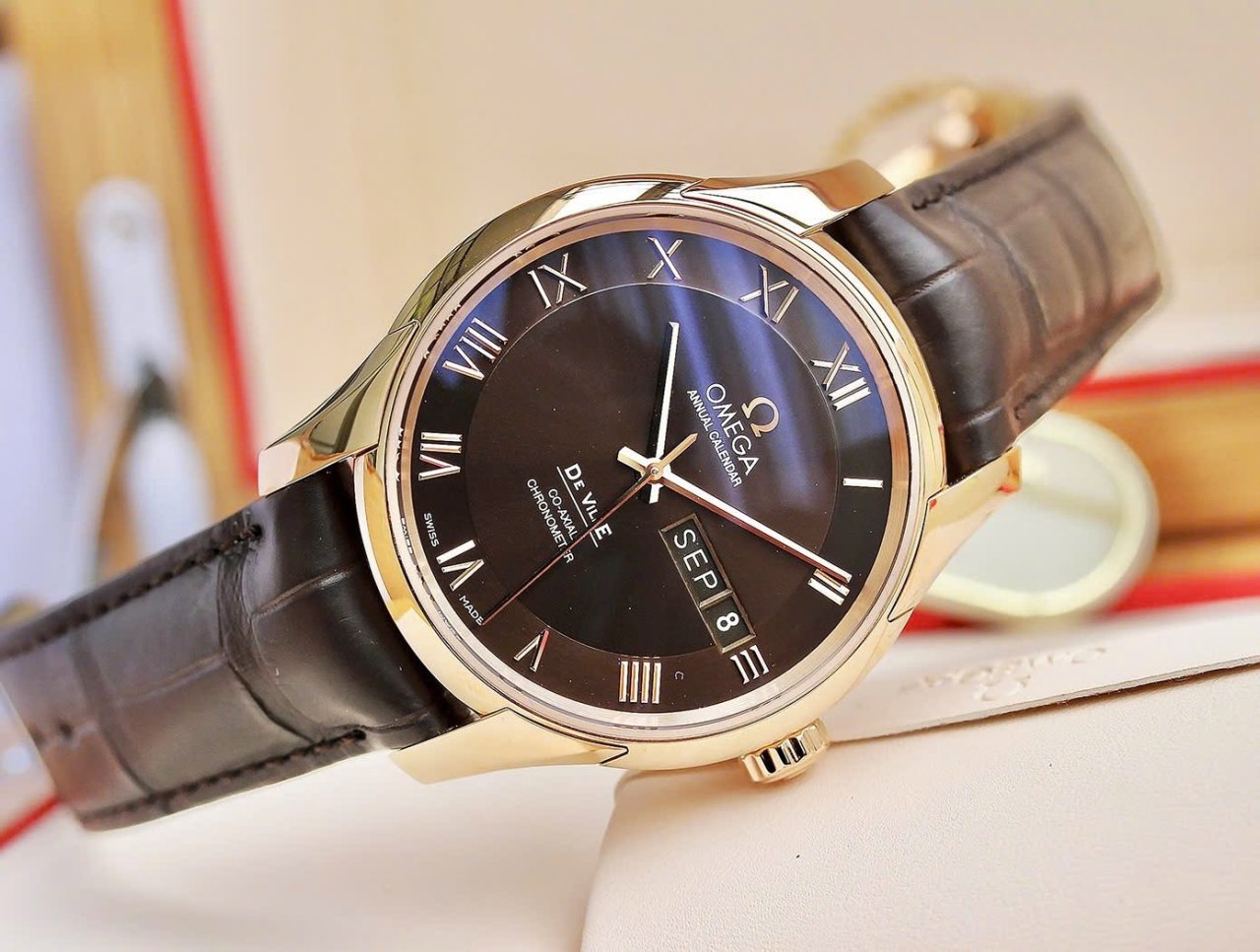 OMEGA DeVille Hour Vision 8611 Chocolate Annual Calendar, Ref: 431.53.41.22.13.001, Vàng hồng đúc 18k nguyên khối, Size 41mm, Brand New 100% fullbox date 10/2025 (Bảo hành CHTC 2030), Giao lưu 338 triệu (Retail: ~ 650 triệu) ah