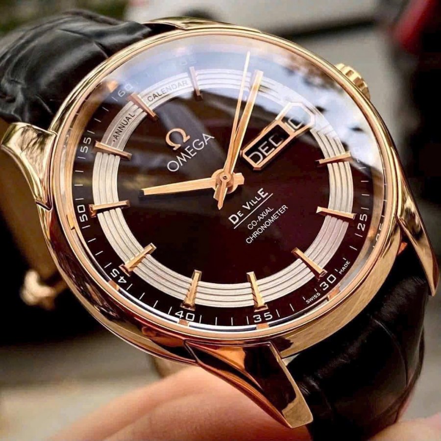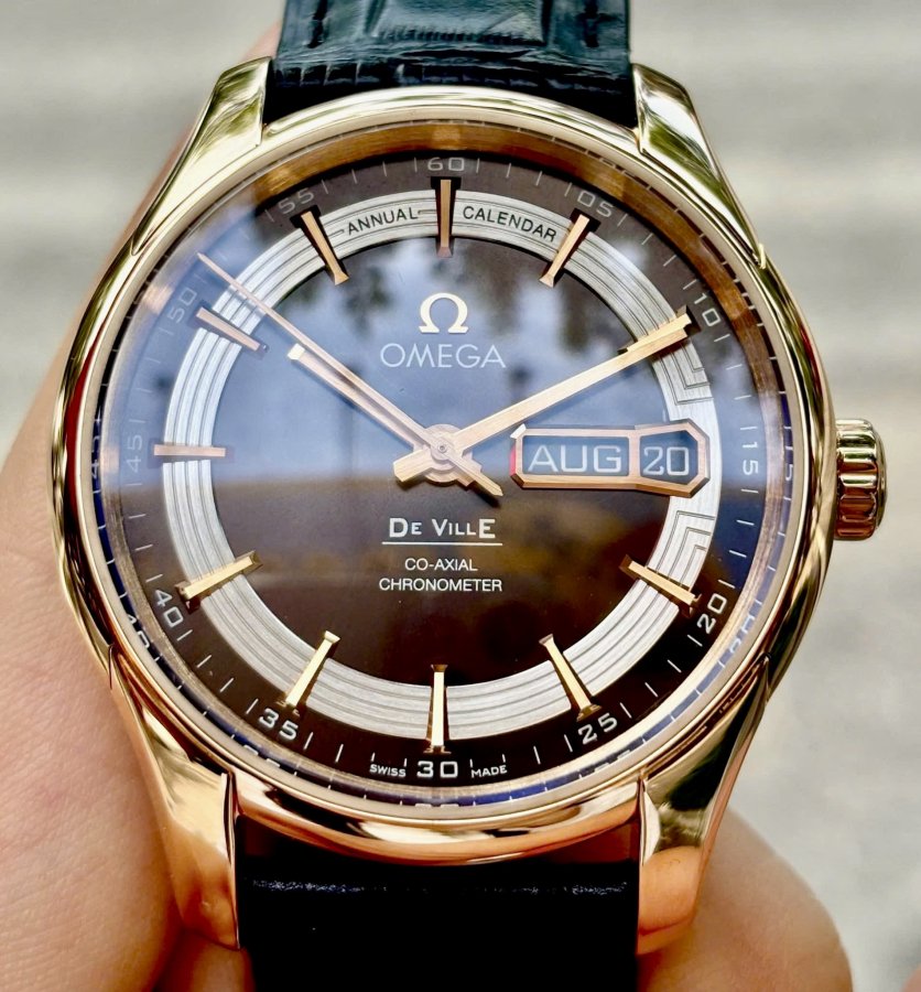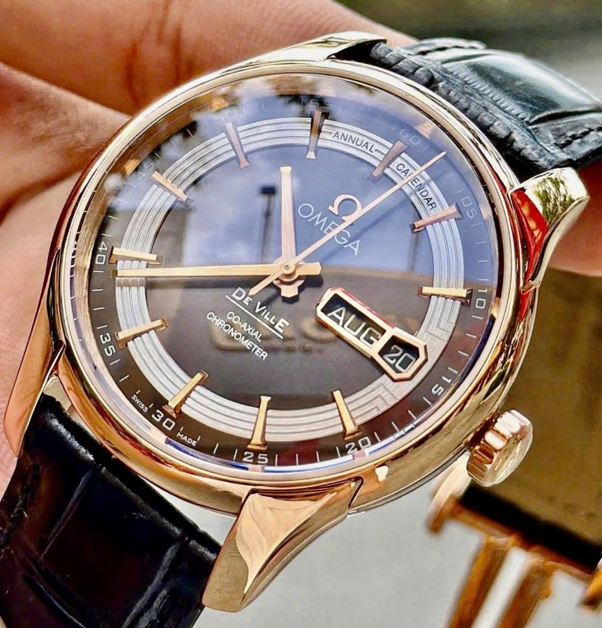 OMEGA Deville Hour Vision 8611 Chocolate Annual Calendar, Ref: 431.63.41.22.13.001, Vàng hồng đúc 18k nguyên khối, Size 41mm, Like new fullbox date cao (Bảo hành CHTC), Giao lưu 268 triệu (Retail:~600 triệu) ah