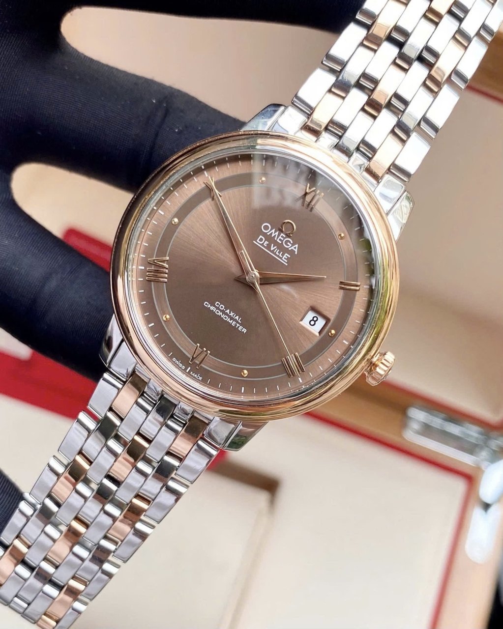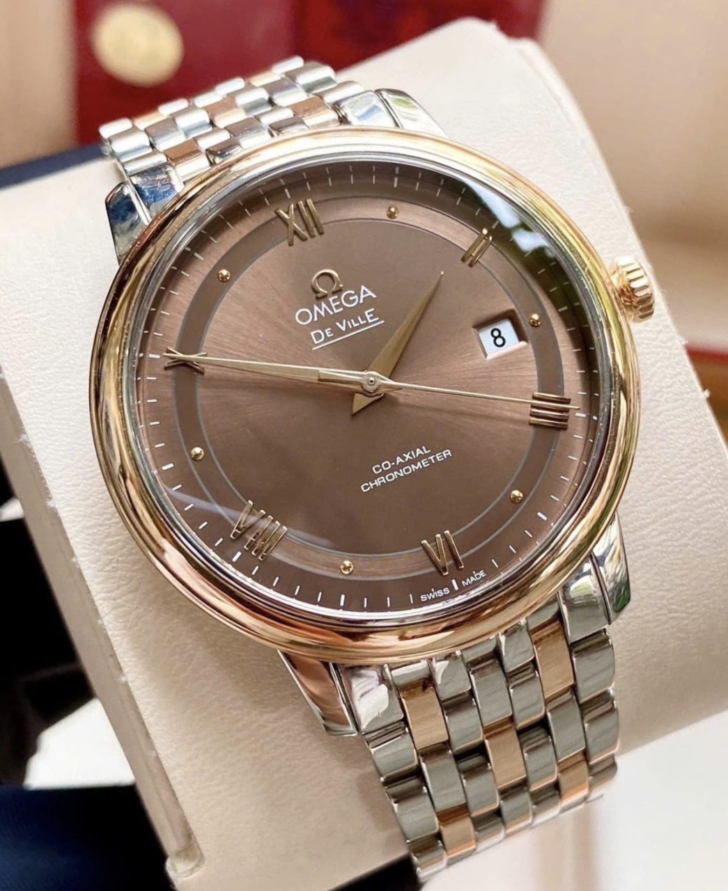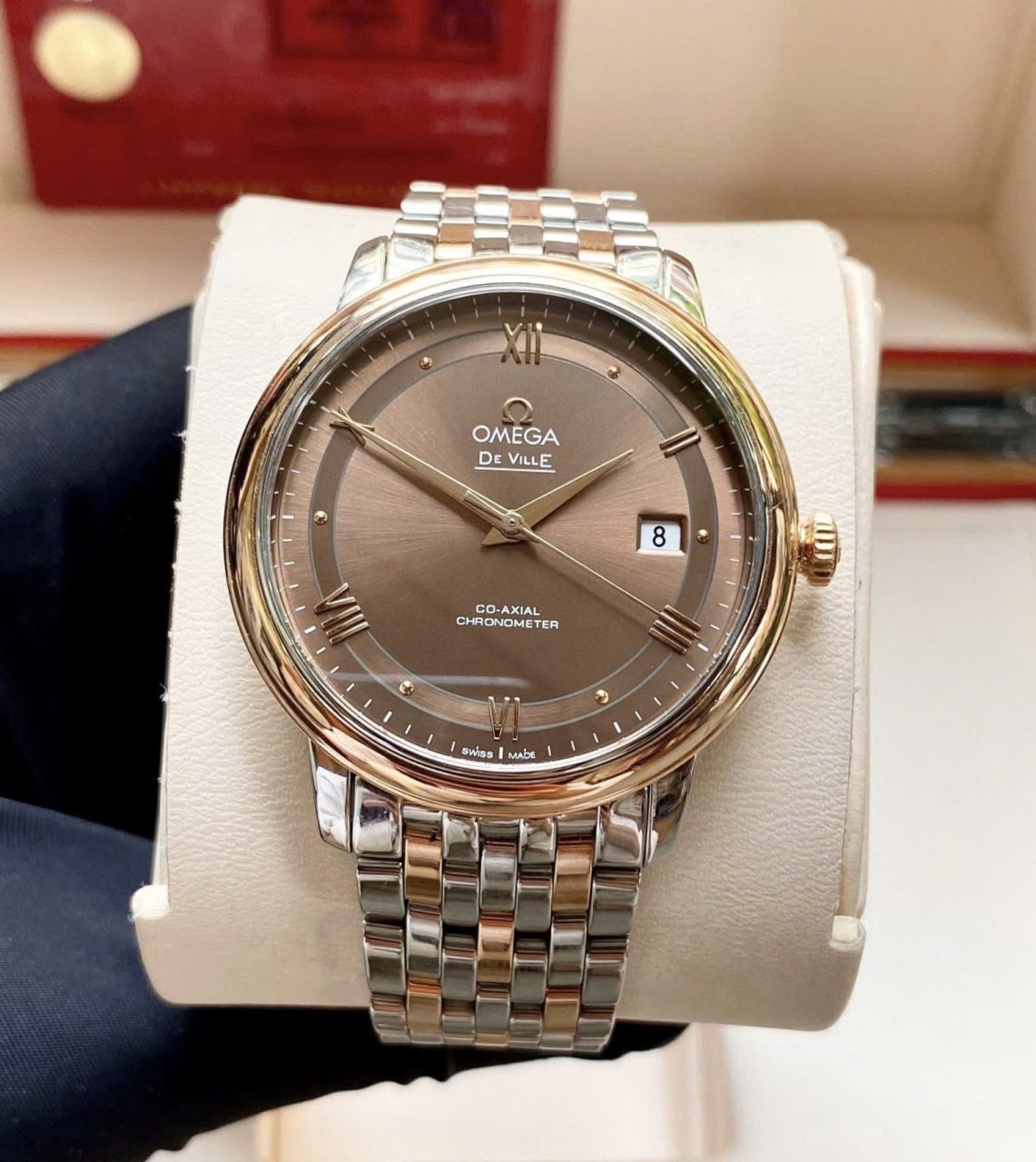 OMEGA DeVille Prestige Co Axial 2500 Chocolate, Ref: 424.20.40.20.13.001, Demi Vàng hồng 18k, Size 39.5mm, Like new fullbox, Giao lưu 8x triệu (Retail: ~ 200 triệu) ah