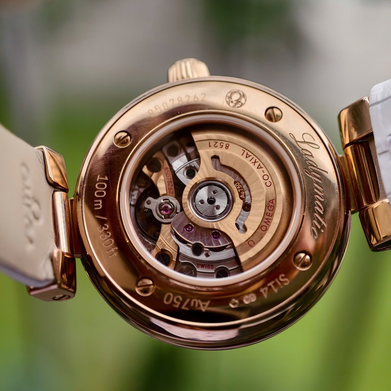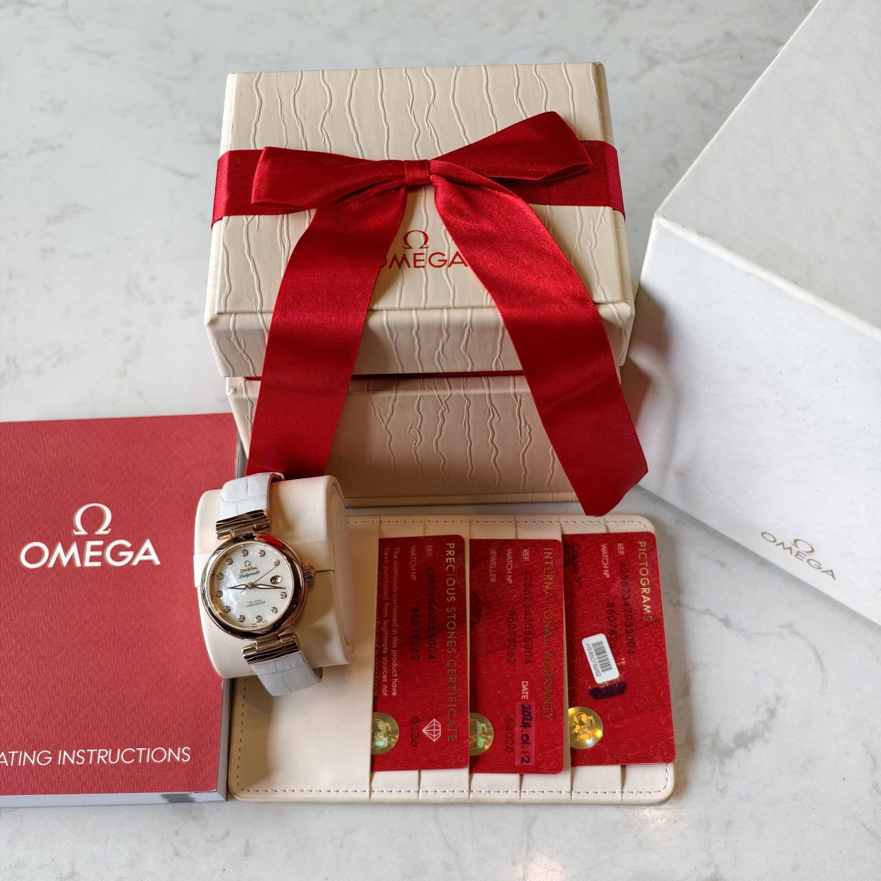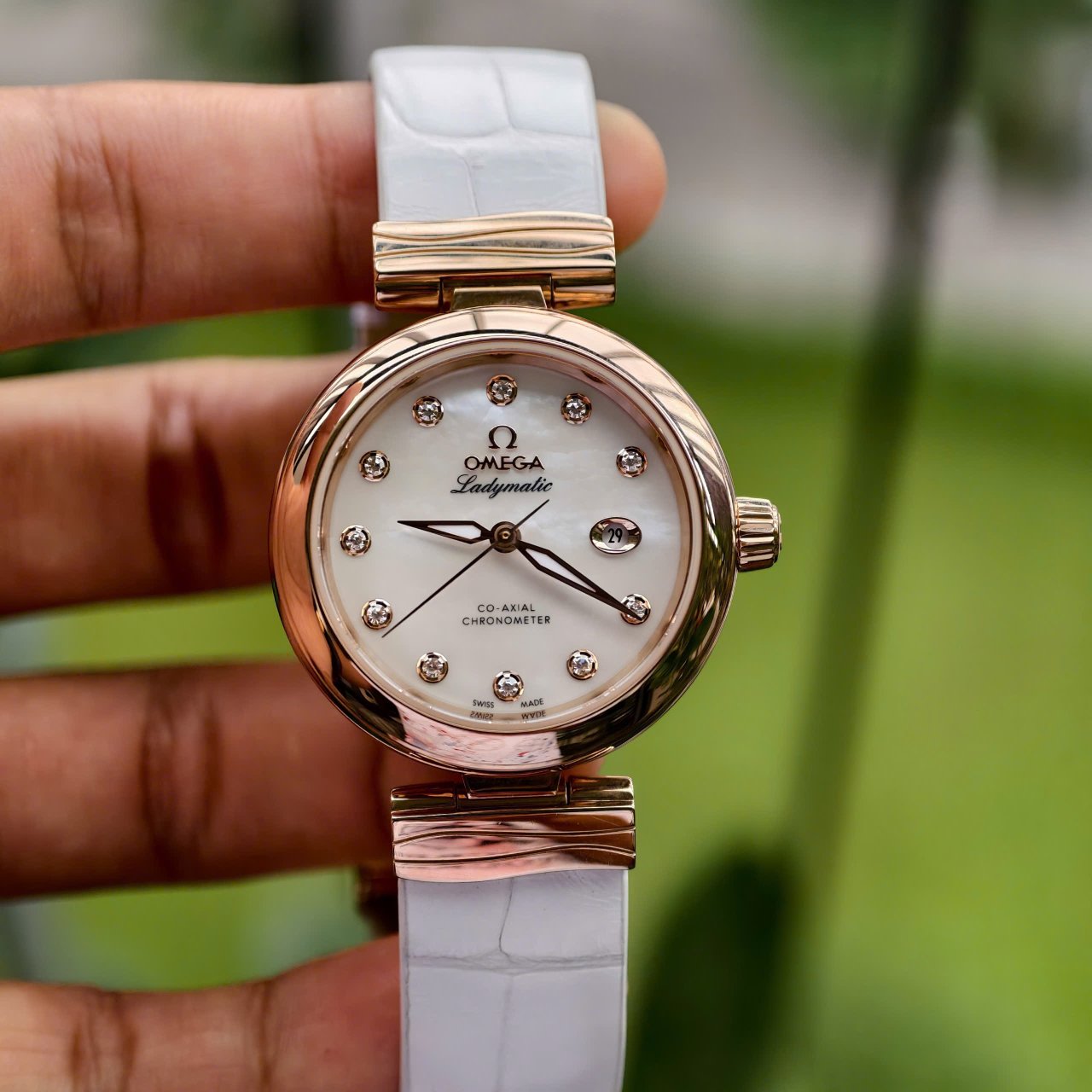 Lại có quà quê cho các Chị Em.Omega laydymatic size 34mm Vàng hồng đúc 18k. Kim cương. Mặt khảm trai Máy 8521 automatic Tình trạng full box date 2024 Hàng biếu tặng chưa qua sử dụng.