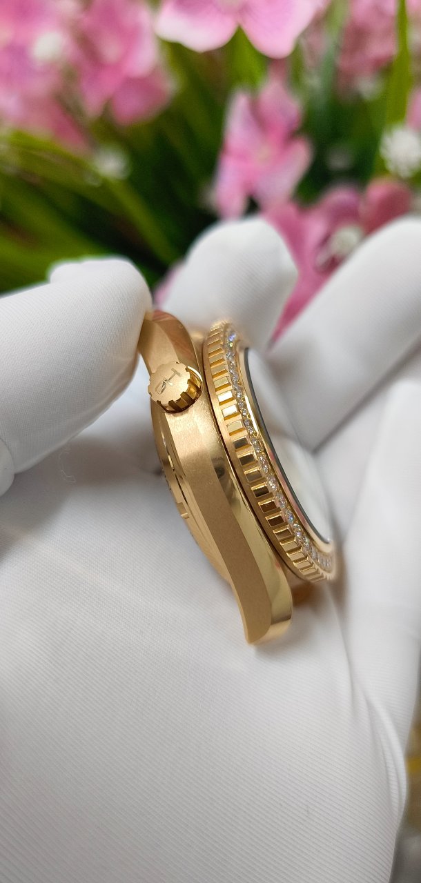 Dial Đen, kim cọc vàng hồng 18K dạ quang