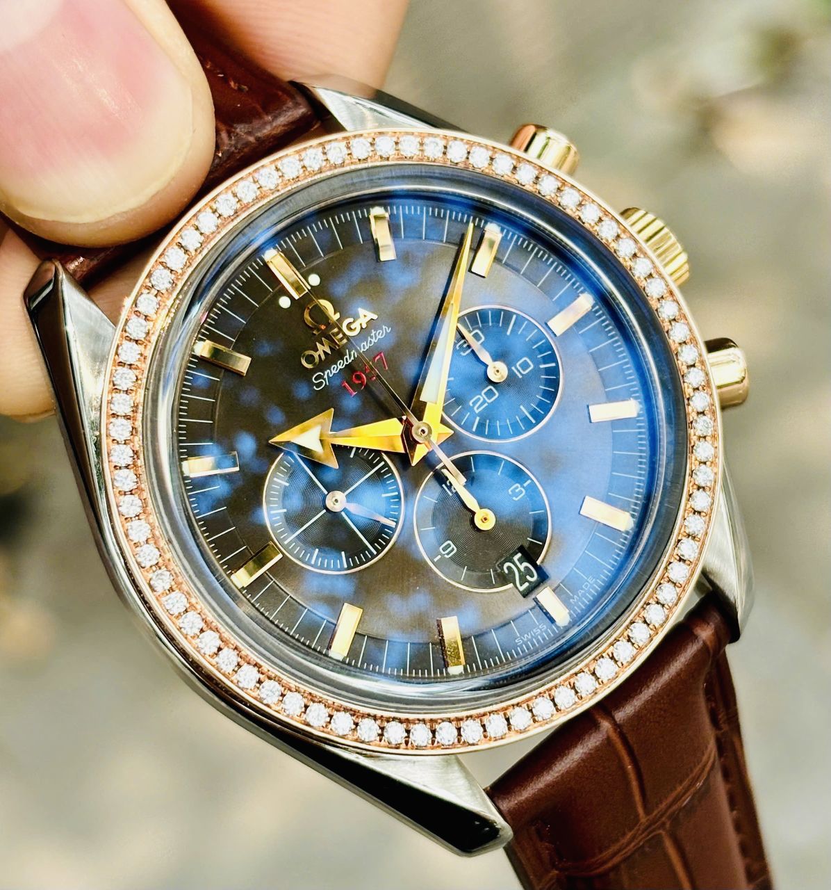 OMEGA Speedmaster Broad Arrow Panda Diamonds, Demi Vàng hồng 18k, Niềng kim cương thiên nhiên, Size 42mm, Like new fullbox, Giao lưu 10x triệu (Retail: 325 triệu) ah