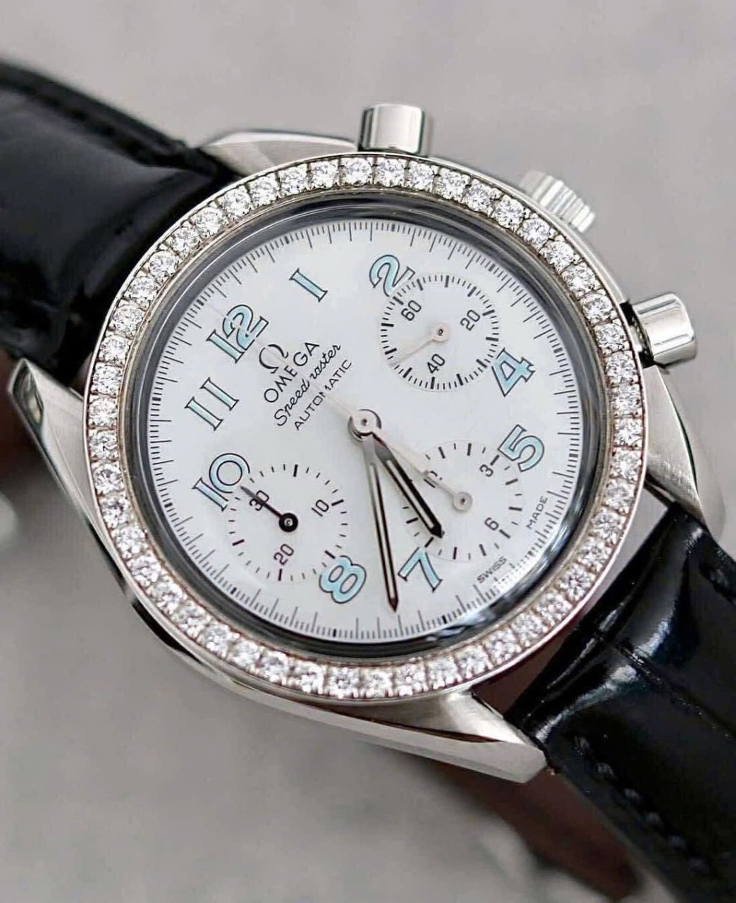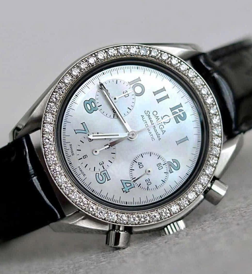 OMEGA Speedmaster Pearl Dial Full Genuine Diamond Bezel Chronograph Automaric Uni*** Size 39mm