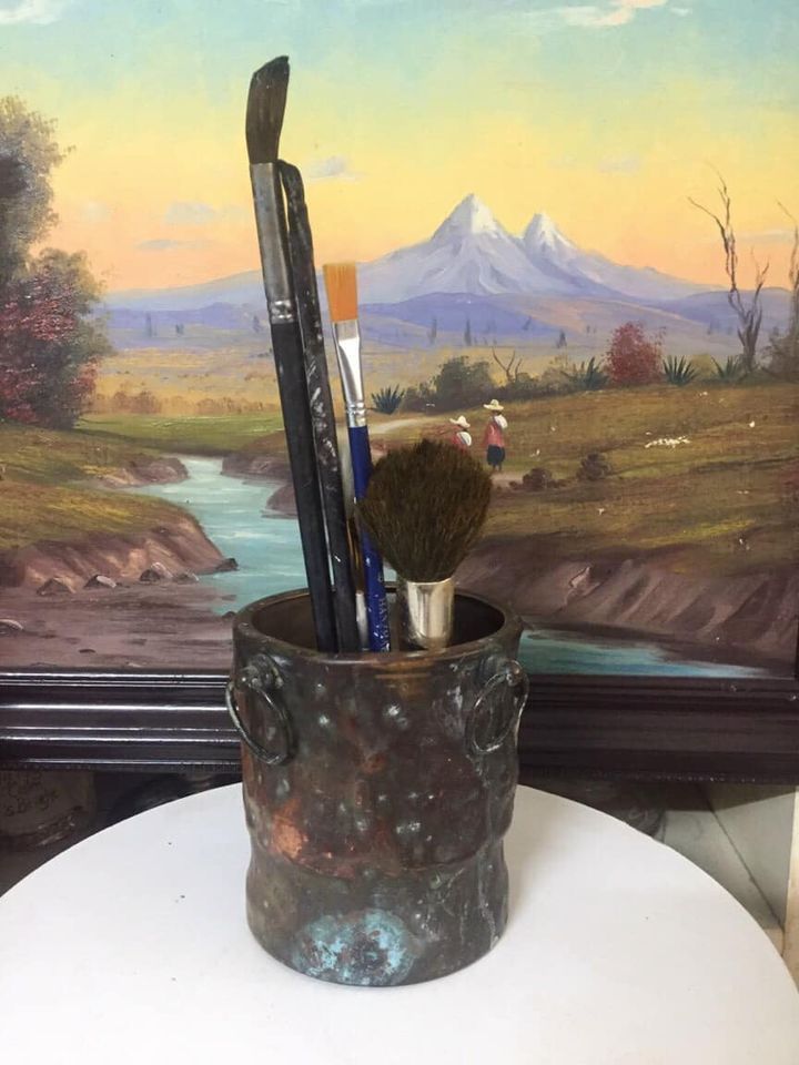 Ống cắm bút đồng xưa