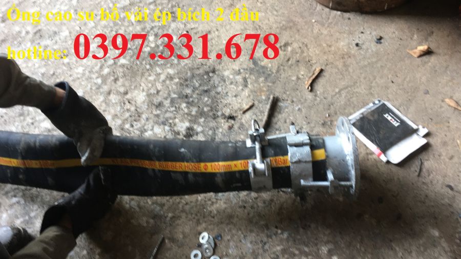 Ống cao su bố vải Phi 100 ép bích, cao su chống phá