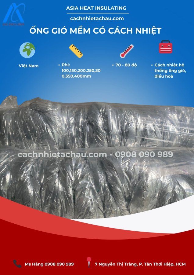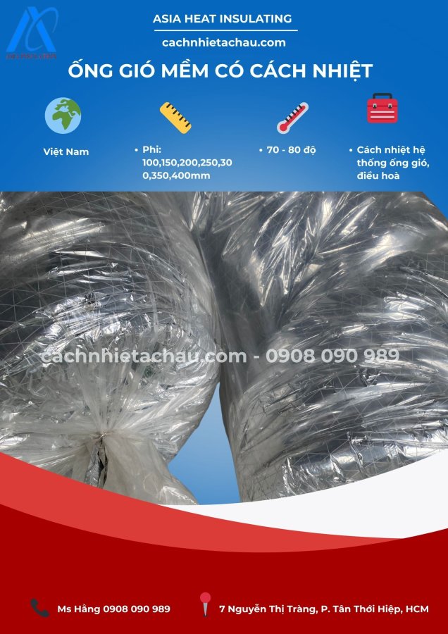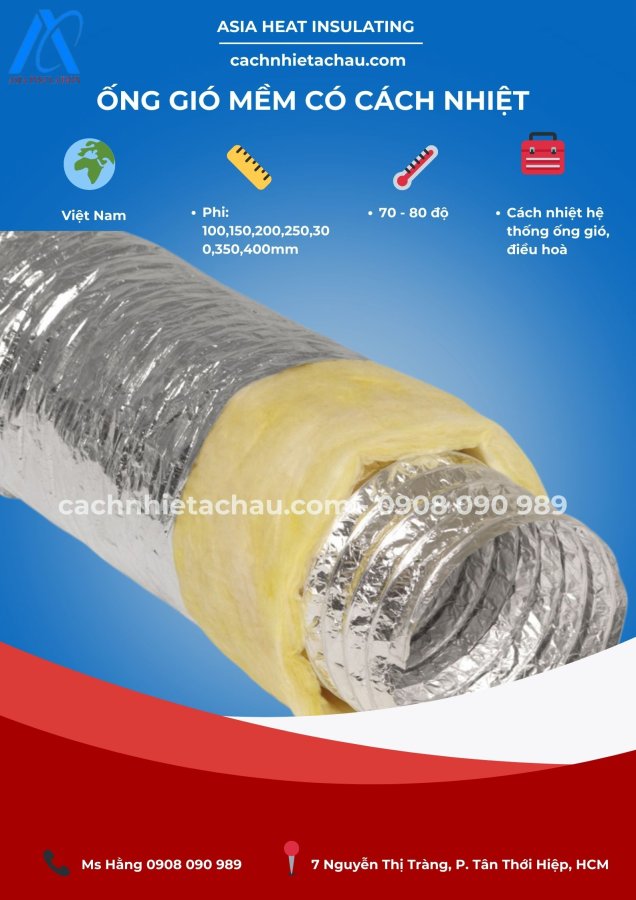 - Ống gió mềm cách nhiệt (với vật liệu cách nhiệt Bông thủy tinh