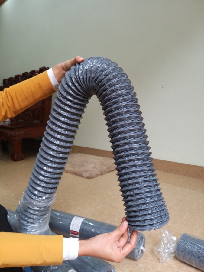 - Chất liệu: được làm từ chất liệu vải simili có độ bền, chống thấm và chịu được nhiệt độ vừa phải. Ống được gia cố thêm lớp lõi thép dạng xoắn lò xo có thể xếp gấp, uốn cong dễ dàng.
