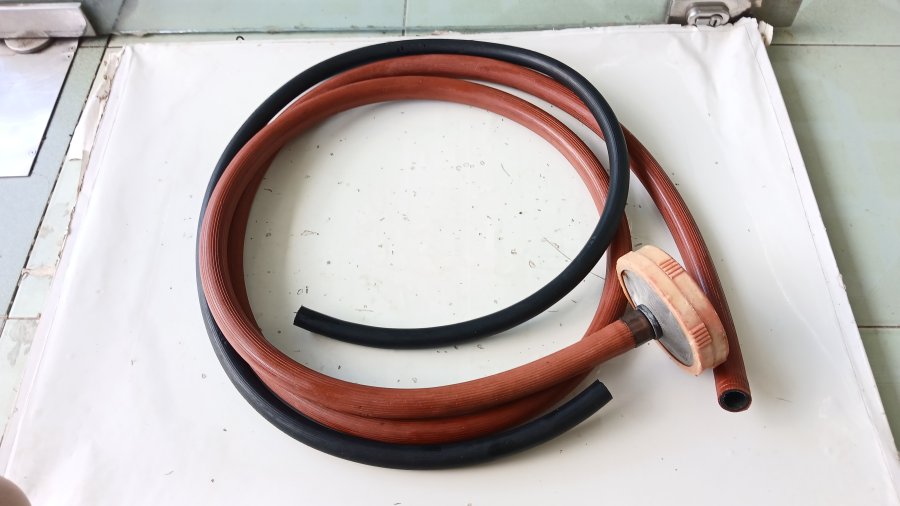 Ống liền đẹp mềm dẻo. Ống hút lưới lượt bằng kim loại chống rỉ tốt dài trên dưới 3m, ống hồi ( màu đen ) dài trên dưới 2m. Loại ống này đồ Nhật xài khác xa đồ chợ ta bán.