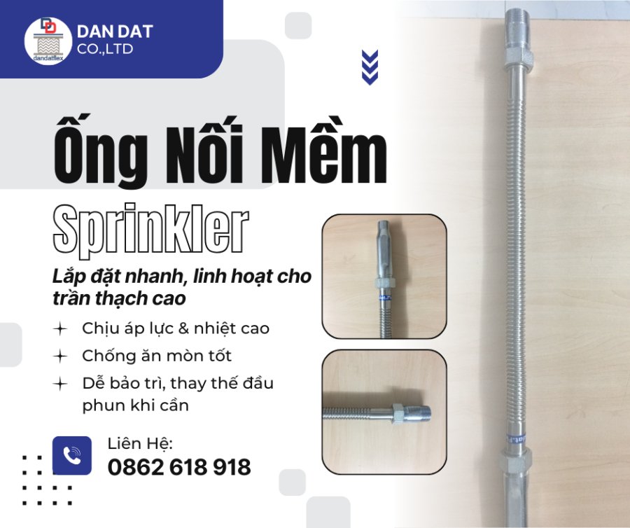Ống mềm nối đầu phun Sprinkler (Flexible Sprinkler Hose) là một loại ống dẻo, thường được làm bằng thép không gỉ (Inox 304 hoặc tương đương) chất lượng cao. Chúng được thiết kế để tạo sự linh hoạt trong việc định vị đầu phun chữa cháy, đặc biệt quan trọng trong các công trình có cấu trúc trần phức tạp, trần thạch cao, hoặc khu vực cần lắp đặt nhanh chóng.