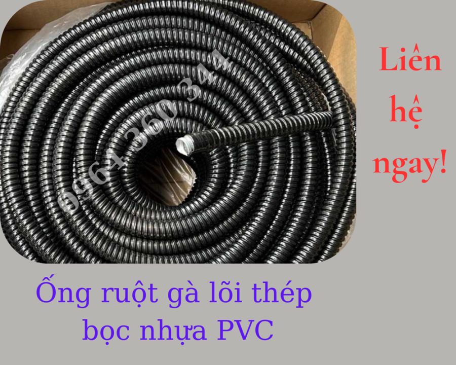 Ống ruột gà lõi thép bọc nhựa đen PVC phi 25 - 1 inch