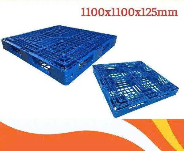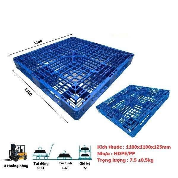 Pallet nhựa xanh: 1100 x 1100 x 125 mm được sử dụng cho việc vận chuyển hàng hóa trong nhà máy, kho bãi, xí nghiệp, công xưởng…