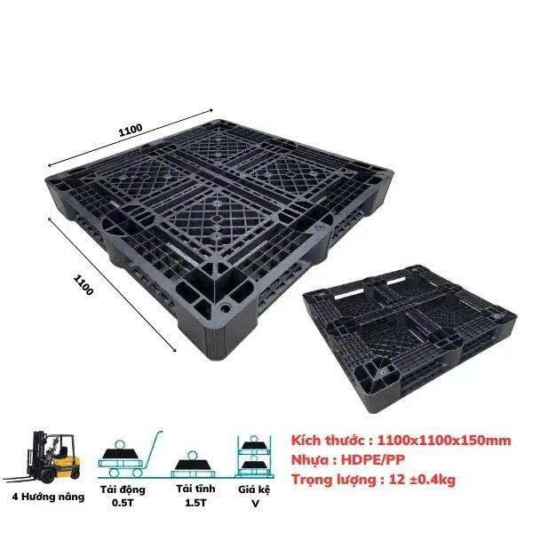 Pallet nhựa : 1100 x 1100 x 150 mm được sử dụng cho việc vận chuyển hàng hóa trong nhà máy, kho bãi, xí nghiệp, công xưởng…