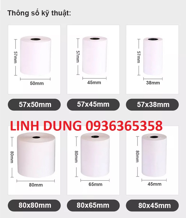 - Khổ 57mm K57x38 dùng cho GRABFOOD, NOWDELIVERY , MÁY CÀ THẺ NGÂN HÀNG - Khổ 80mm K80-45mm