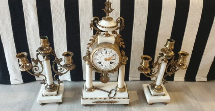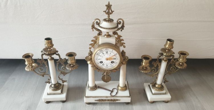 (pháp) Đồng hồ để bàn đá đồng Napoleon tk19