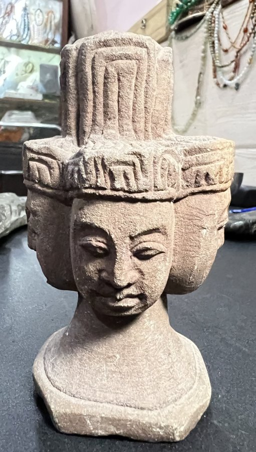 Phật Thủ bốn mặt Đá sa thạch cổ xưa Cao 10cm