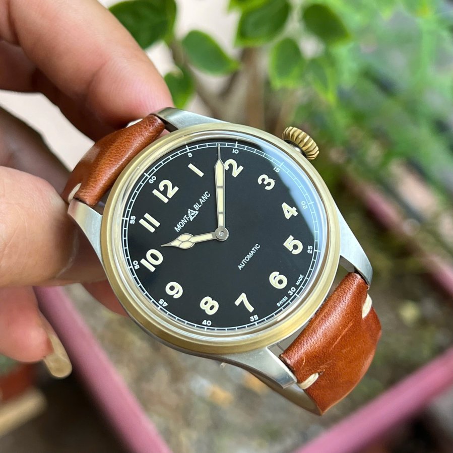 Montblanc 1858 116241 Size 44mm Dial đen vân cát sầnKim cọc dạ quang màu be vintageMáy auto matic thuỵ sỹNew ~82trLike new full set