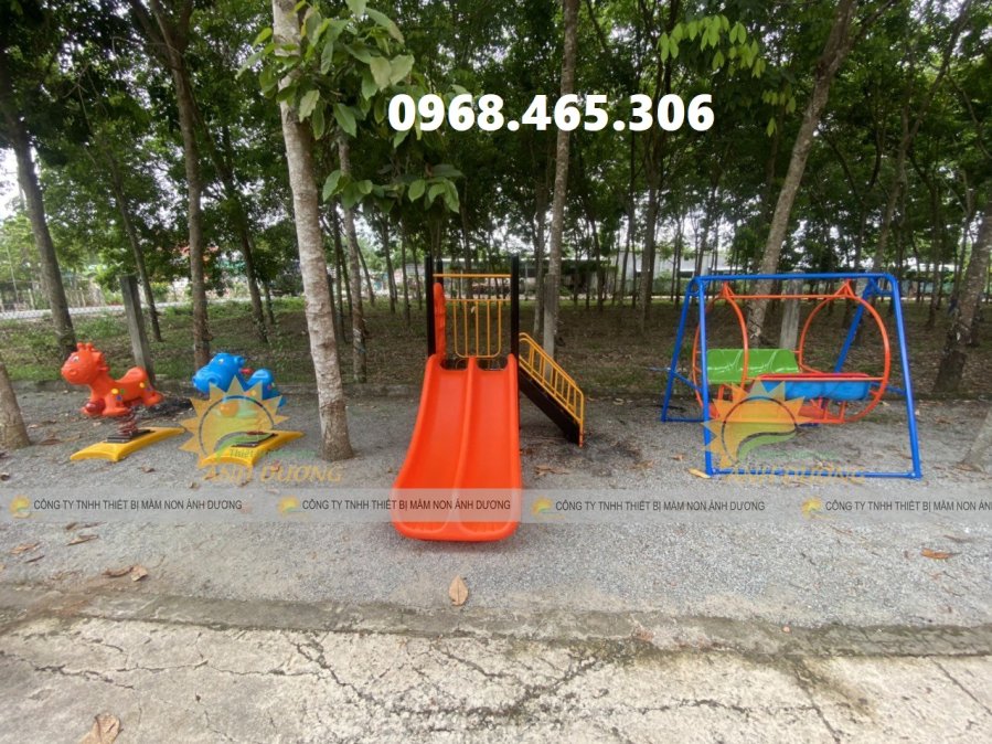 Cầu trượt trẻ em ngoài trời, xích đu trẻ em, thú nhún lò xo khu vui chơi trẻ em